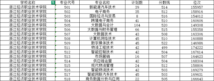 比如去年的一段分数线是490分,而号称浙江“三金”的浙江金融职业学院、浙江经贸职业技术学院、浙江经济职业技术学院,这些专业都在490分之上。