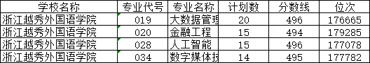 比如浙江越秀外国语学院的大数据管理、金融工程、人工智能、数字媒体技术等专业,都在500以下。