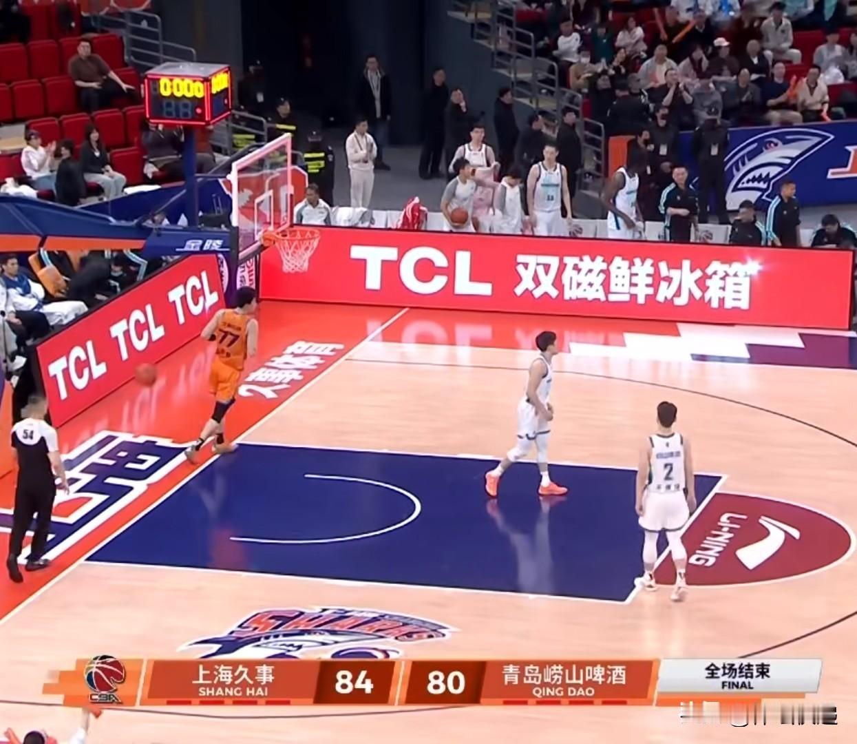 主场全胜!!!上海久事逆转青岛崂山啤酒保持赛场主场不败。CBA常规赛第26轮,上海久事主场迎来青岛崂山啤酒,这也是本轮的一场重磅戏。上海久事本赛季以来表现亮眼,主场从未失手。青岛崂山啤酒窗口期补强内线,阵容更加完备。首节开始,双方比赛你来我往,难分伯仲。比赛中后段,上海久事进攻低效,青岛崂山啤酒趁机拉大分差。首节结束,上海久事16:27青岛崂山啤酒。次节上海久事开启追分模式,但青岛崂山啤酒在关键时刻总能及时回应,分差缩小到个位数。半场结束,上海久事44:49青岛崂山啤酒。第三节上海久事终于将比分扳平,但青岛崂山啤酒凭借两记罚球继续微微领先。三节结束,上海久事66:68青岛崂山啤酒。第四节上海久事将比分反超,青岛崂山啤酒叫暂停。暂停回来,青岛崂山啤酒缩小分差,上海久事叫暂停。暂停回来,洛夫顿连续强攻得手,再次拉开分差。全场比赛结束,上海久事84:80青岛崂山啤酒,逆转取胜,捍卫本赛季主场全胜。