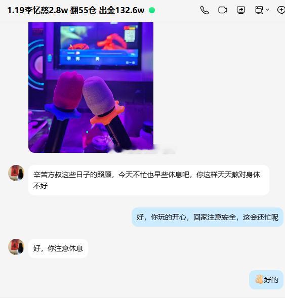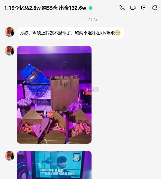 亿慈今晚出金成功,直接跟两个小姐妹去KTV嗨皮、享受生活去了。晚间将不再参与操作~不要假装努力,生活不会陪你演戏。执行力,才是拉开差距的关键。世界奖励敢想的人,更奖励敢做的人。