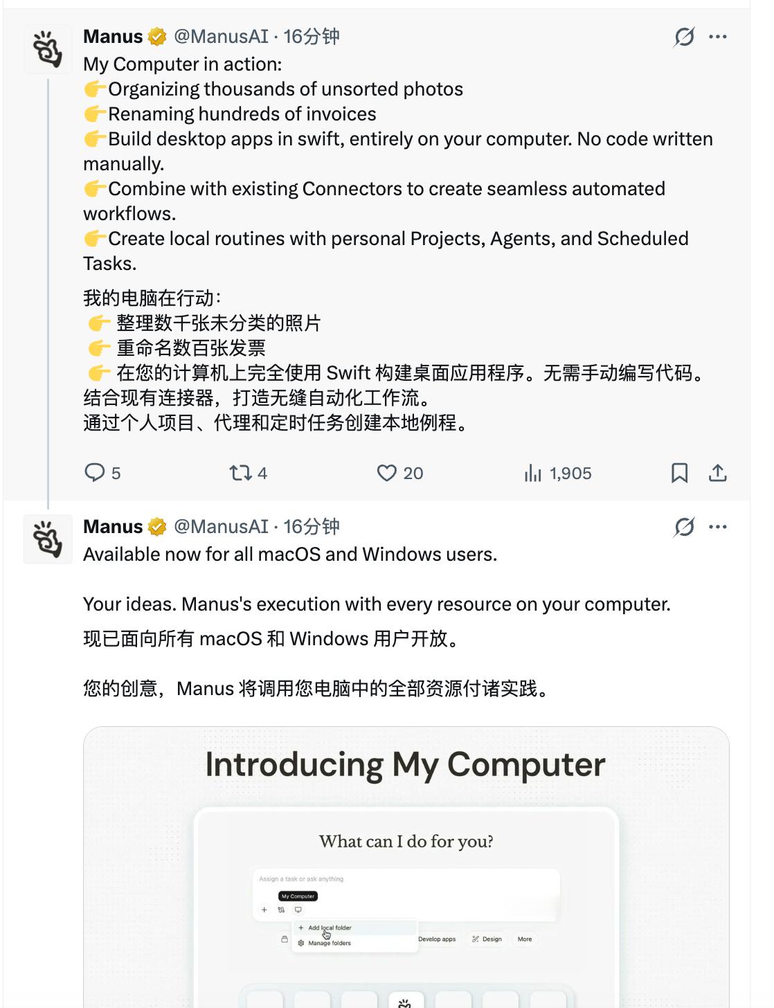 Manus 也推出了客户端,Mac 和 Windows 同时推出