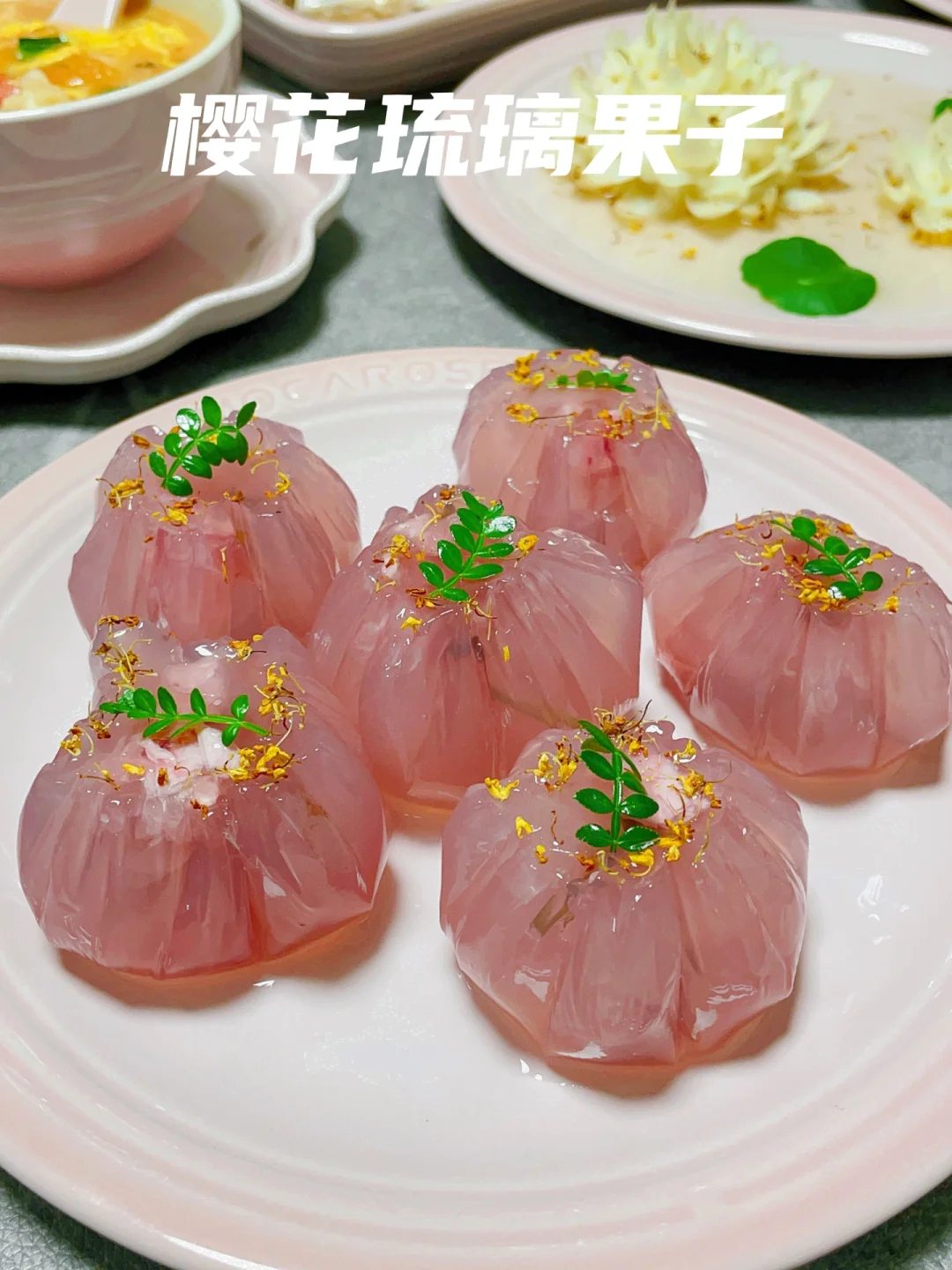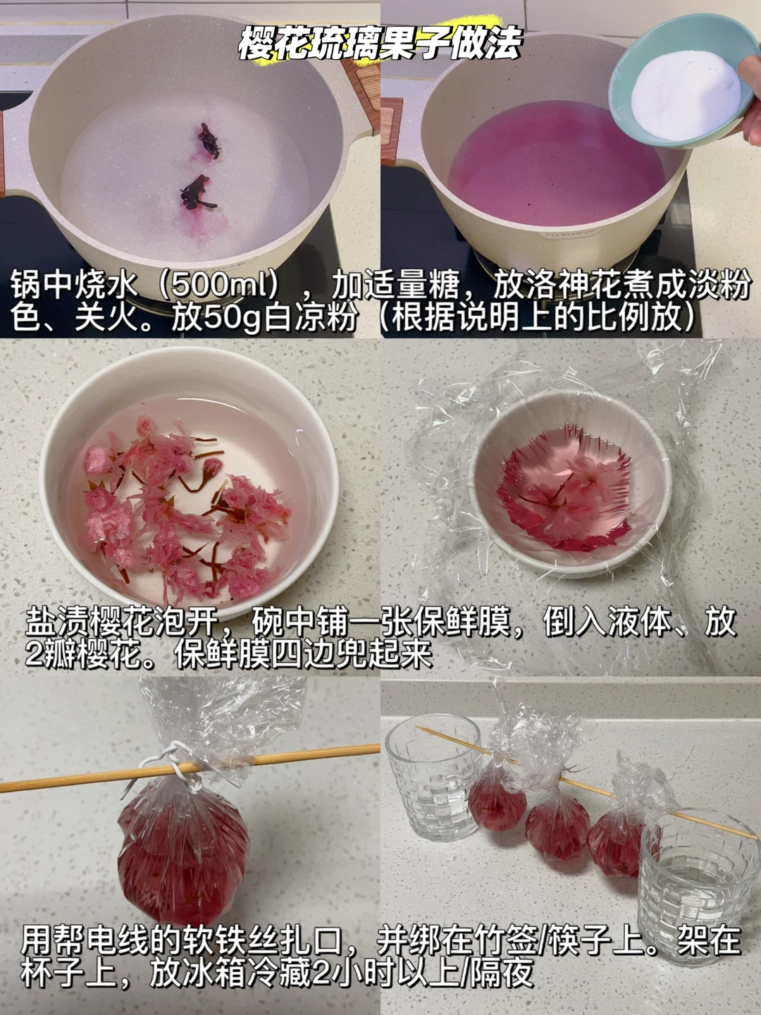1、这个季节樱花果子太应景了,好看又好吃。制作时、白凉粉要按照比例放、少了会不成形。里面可以放盐渍樱花、也可以放水果。这样的高颜值小甜品谁能不爱呢~