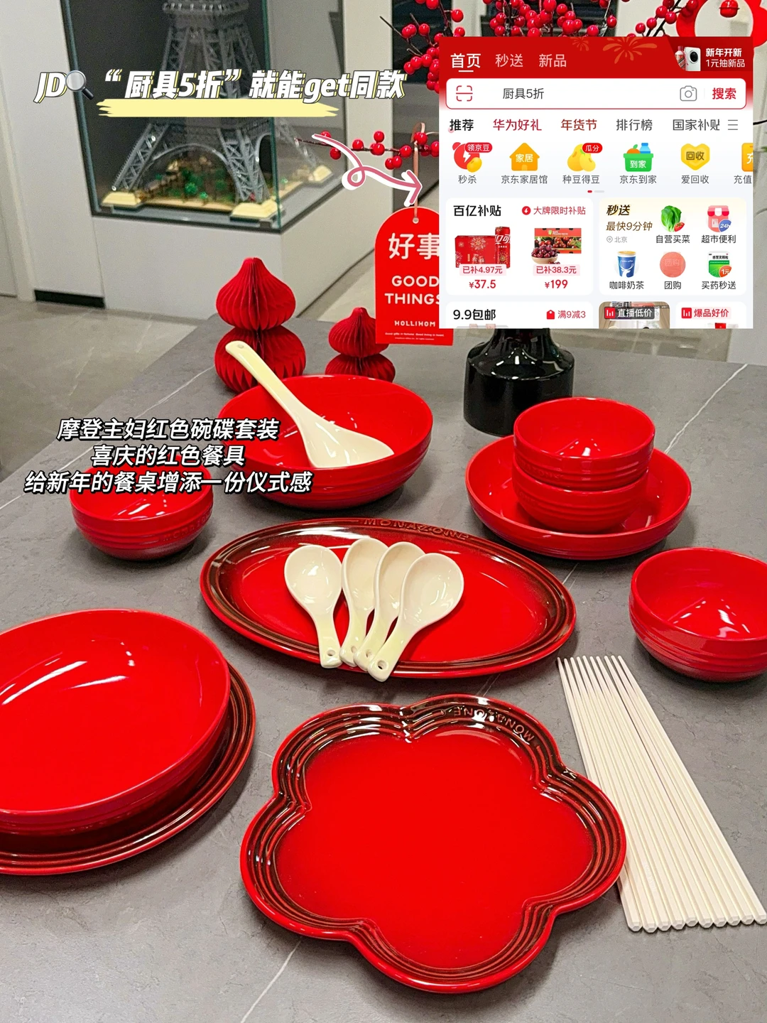 一年一度的年夜饭大餐准备好了吗?今天换了套超喜庆的红色餐具,给新年的餐桌再添一份仪式感[派对R][派对R][派对R]