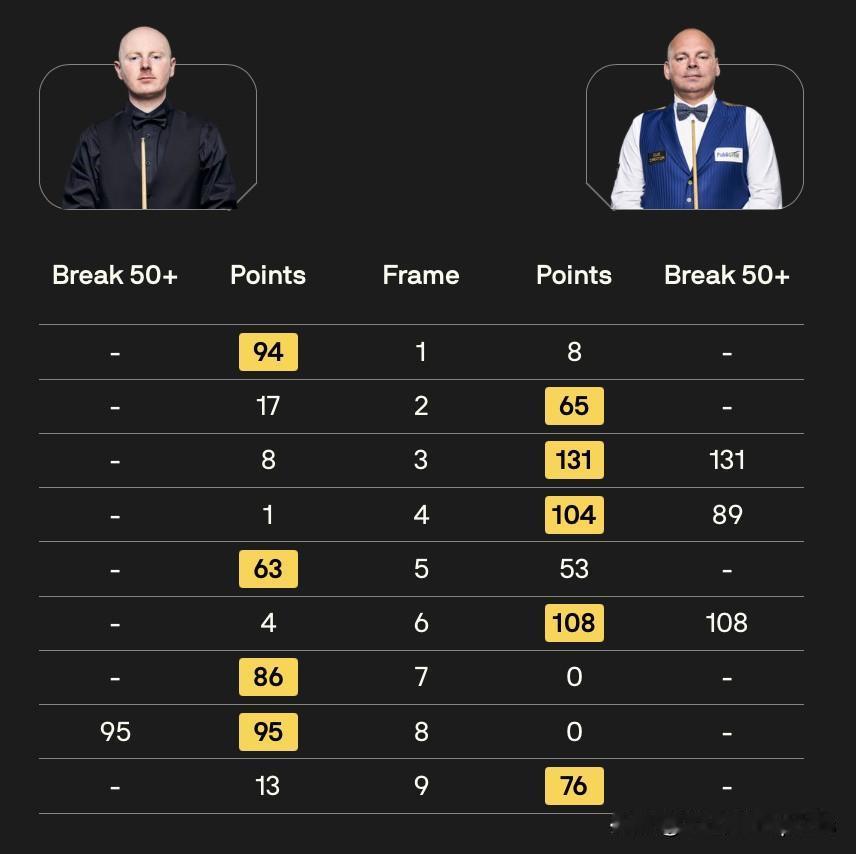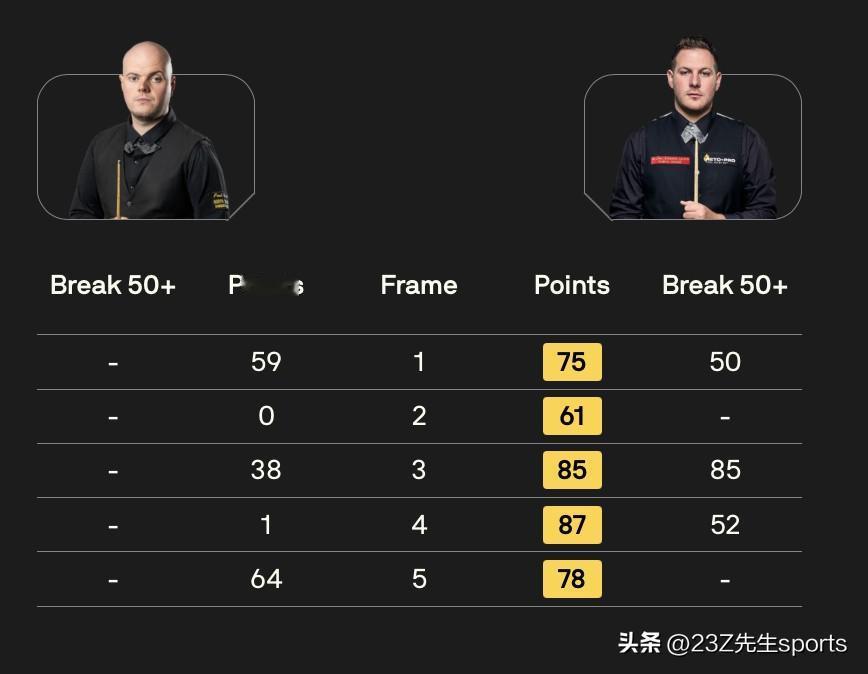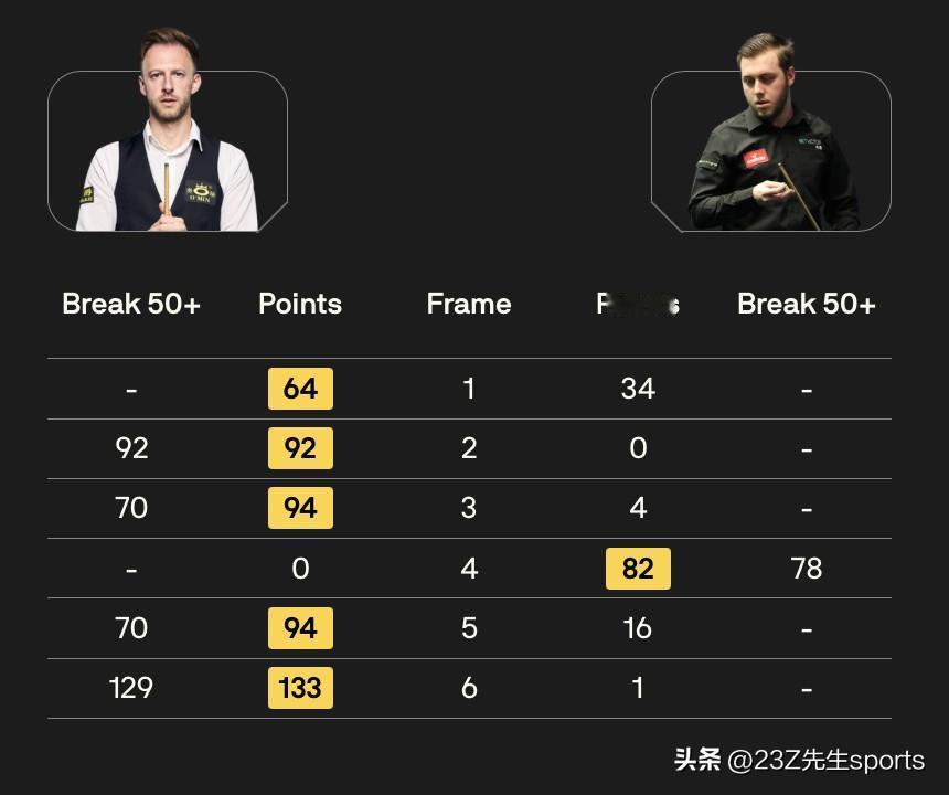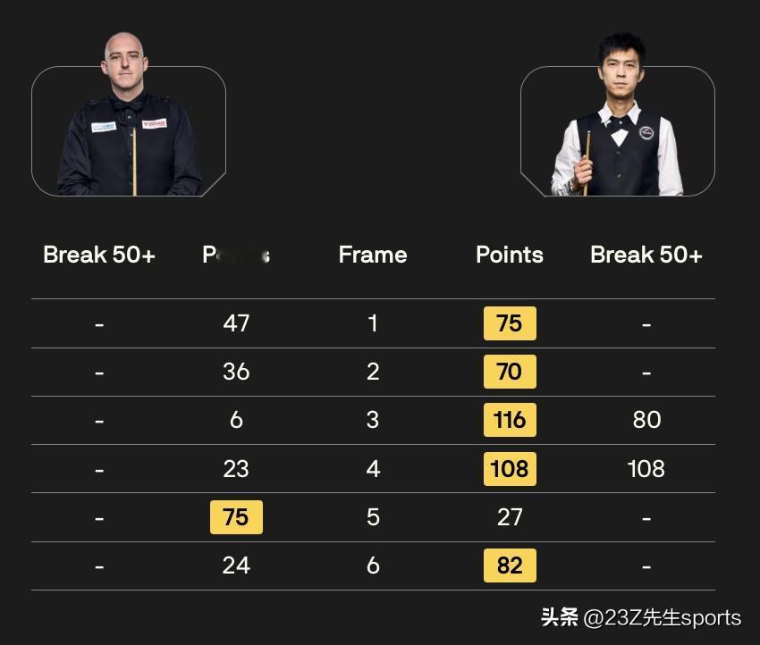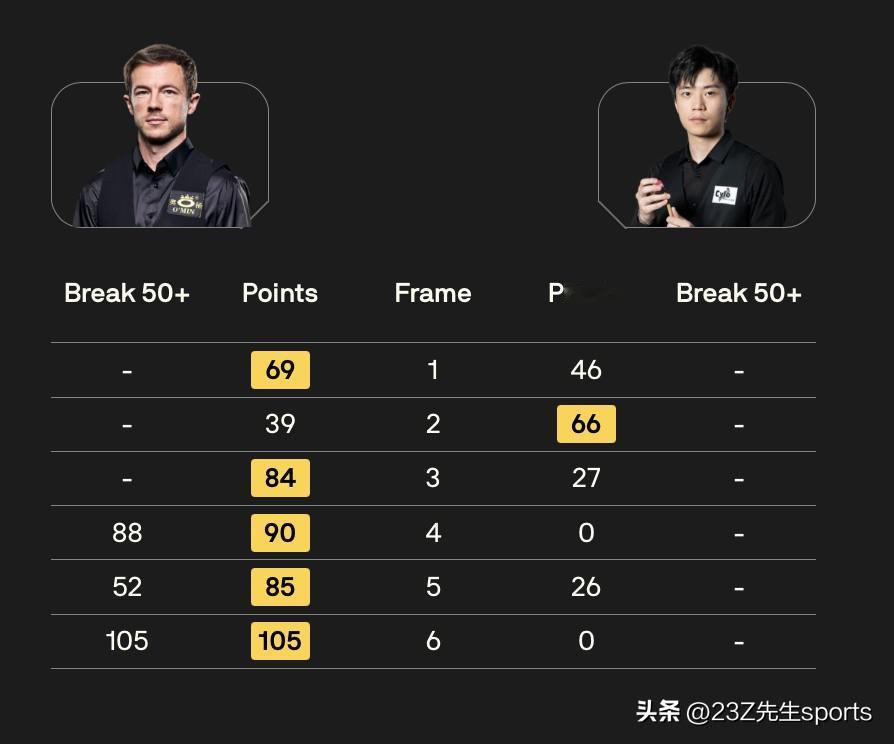第一比赛日19:30比分结果如下: 128进64轮次 赵心童 5-0 韩富源 贾德·特鲁姆普 5-1 马克·劳埃德 里奇·沃顿 5-2 王信伯 64进32轮次 杰克·利索夫斯基 5-1 张家玮 安东尼·麦克吉尔 4-5 斯图尔特·宾汉姆 埃利奥特·斯莱塞 0-5 丹尼尔·威尔斯 马修·史蒂文斯 1-5 侯赛因·瓦菲 大卫·格雷斯 1-5 塔猜亚·乌努