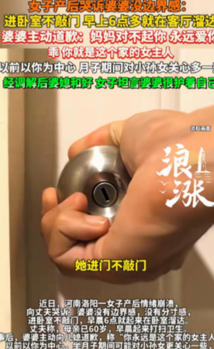 河南洛阳,儿媳生产,婆婆来到儿子家中帮忙,因早上婆婆未经儿媳允许,进入其房间打扫卫生,导致儿媳情绪崩溃,哭着向丈夫表示婆婆没边界感,事后,婆婆没有同儿媳争吵,也没有埋怨,反而主动认错,向儿媳道歉,还表示儿媳永远是这个家的主人,儿媳最终释怀,两人和好如初。 事情的起因,源于一位刚生产不久的儿媳和前来帮忙的婆婆,儿媳刚经历生产,身体还处于恢复阶段,情绪也格外敏感脆弱,急需安静的休息环境和专属的私密空间。 婆婆得知儿媳生产后,特意从老家赶来,满心欢喜地想为儿子儿媳分担,照顾产妇和新生儿的饮食起居,每天早起晚睡,忙前忙后,一心想帮家里多做些事,却在不经意间忽略了儿媳的感受。 一天清晨天刚蒙蒙亮,婆婆像往常一样早早起床,想着趁儿媳和孩子还在休息,先把他们的房间打扫干净,让两人醒来能有一个整洁舒适的环境。 她没有多想,也没有提前告知儿媳,便径直推开了卧室的门,开始默默打扫卫生、整理衣物,丝毫没有意识到,自己的这个举动,已经触动了儿媳的情绪底线。 刚喂完奶、正准备休息的儿媳,被突然闯入的身影惊醒,瞬间感到一阵慌乱和委屈,自从生产后,她本就缺乏安全感,卧室是她唯一能卸下防备、安心休息的地方。 而婆婆未经允许随意进入,让她觉得自己的隐私被侵犯,长期积攒的疲惫和敏感在这一刻彻底爆发,她再也忍不住,失声痛哭起来,等丈夫闻声赶来时,她一边抹着眼泪,一边诉说着自己的委屈,坦言婆婆的举动让她感到没有边界感,哪怕是家人,也该有基本的尊重和分寸。 丈夫连忙安抚好儿媳的情绪,随后把事情的来龙去脉告诉了婆婆,得知自己的无心之举让儿媳如此委屈,婆婆没有丝毫辩解,也没有埋怨儿媳小题大做,反而陷入了深深的自责。 她静下心来仔细回想,才意识到自己因为一心想着帮忙,忽略了年轻人对隐私和边界感的重视,也忘了产后儿媳的情绪格外脆弱,自己的热心反而给儿媳带来了困扰。 没过多久婆婆主动走到儿媳身边,诚恳地向她道歉,坦言是自己考虑不周,没有尊重她的隐私和感受,不该未经允许就进入她的房间。 她还温柔地告诉儿媳,这个家从来都不是自己的,儿媳才是这个家真正的主人,以后一定会多注意分寸,凡事都会提前询问她的意见,不再随意打扰她的休息和隐私。 看着婆婆诚恳的态度,听着暖心的话语,儿媳的情绪渐渐平复下来,她也明白,婆婆的初衷都是为了自己和孩子好,只是两代人之间的观念不同,才造成了这场小误会。 想到婆婆这些天的辛苦付出,想到她主动认错的包容,儿媳心中的委屈渐渐消散,最终选择了释怀,她原谅了婆婆的无心之失,也坦言自己产后情绪过于敏感,不该轻易崩溃落泪。 这场小小的风波没有让婆媳关系变得僵硬,反而让两人更加懂得了彼此包容和尊重的重要性,此后,婆婆谨记承诺,凡事都讲究分寸,尊重儿媳的边界和隐私。 儿媳也多了一份体谅,理解婆婆的热心和不易,两人相处得愈发和睦,仿佛亲母女一般,用包容和善意,诠释了婆媳相处的最好模样,也让这个小家庭,在温暖与理解中,愈发幸福美满。