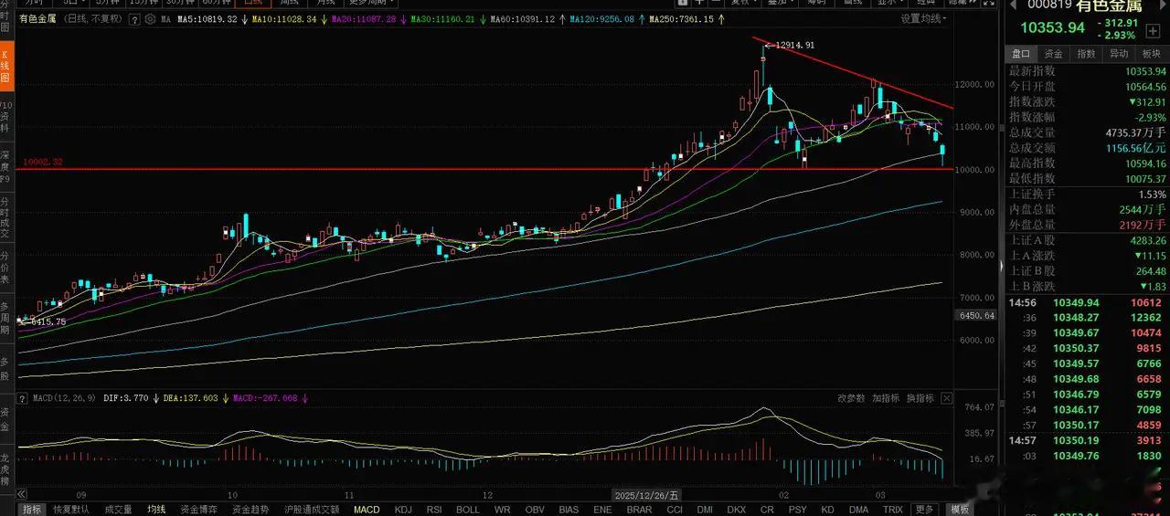 有色金属大幅调整,有色金属、稀土走势分析1、有色金属,大跌2.93%,有色金属1
