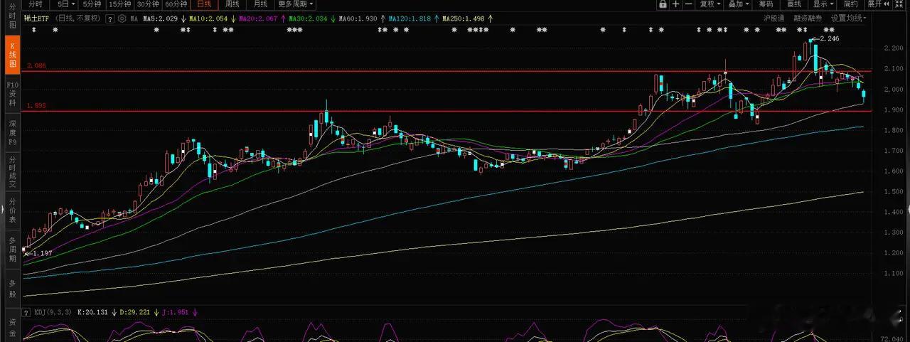 2、稀土。重新回到了区间震荡平台,KDJ指标已经到位,明天低开也基本到位了,要开始反弹了。暂时也没啥大行情。周线同样有顶背离和macd死叉。调整时间不会短,但是调整幅度不会有色那么大。