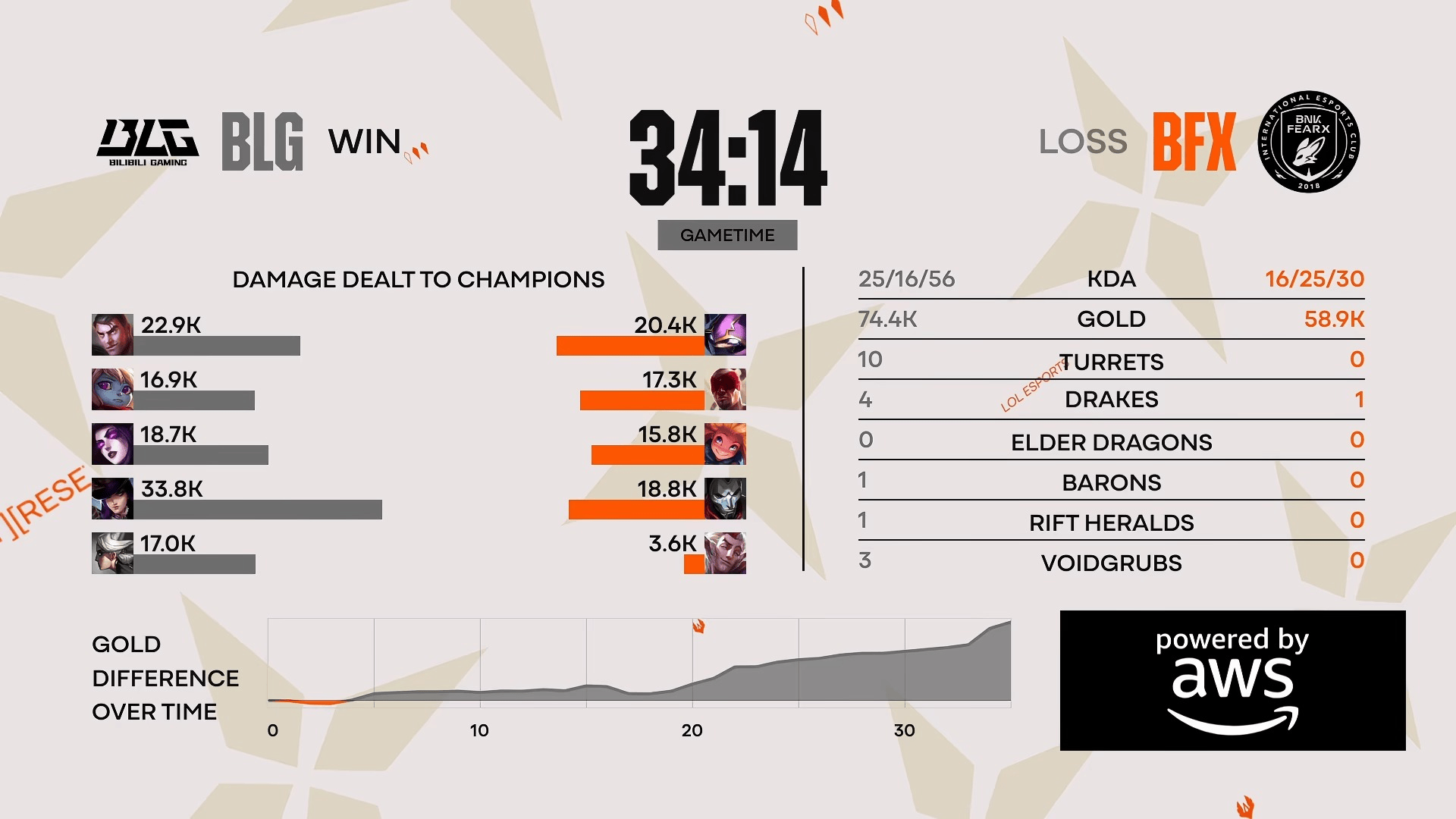 比赛第33分钟,BLG带大龙一波结束比赛→