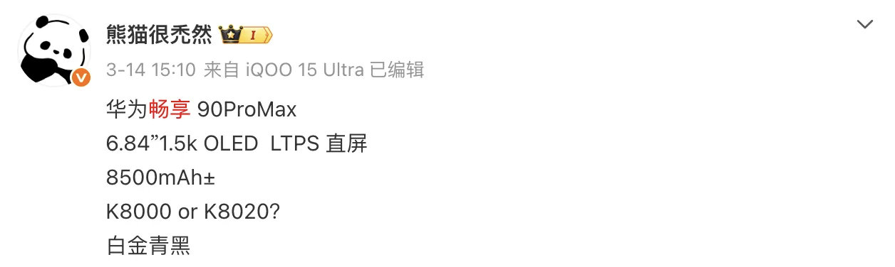 如果华为畅享 90 Pro Max真是采用红枫镜头+麒麟 8020、 8500mAh 电池容量,价位在二千以下,那真的太猛了,降维打击了吧??