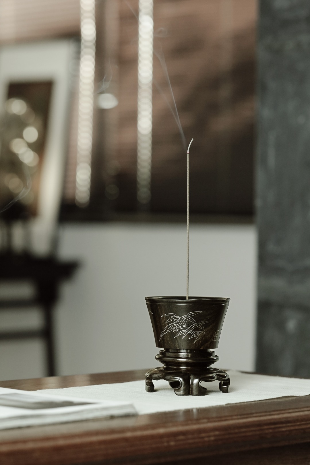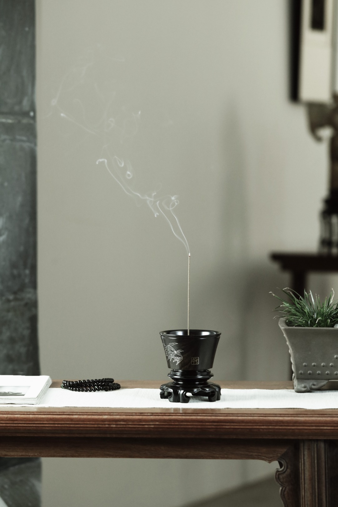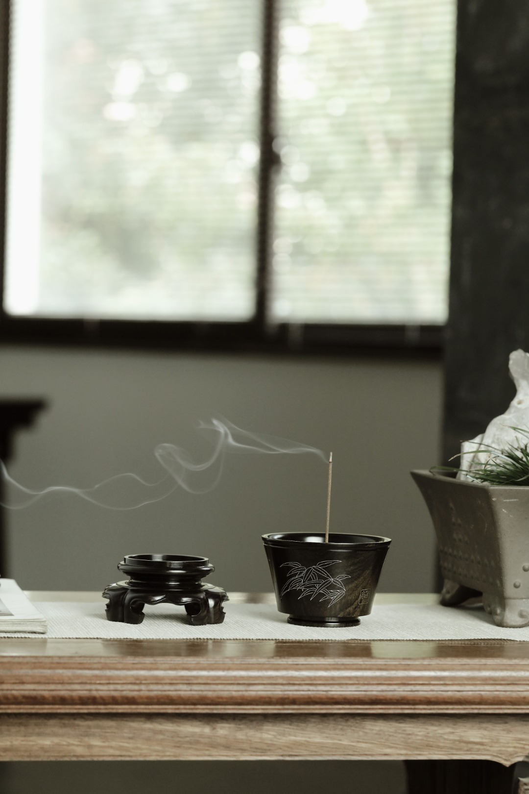 紫光檀x银丝【竹】香炉取材紫光檀精品料,上部外壁以嵌银丝工艺饰文竹、落款篆书”下