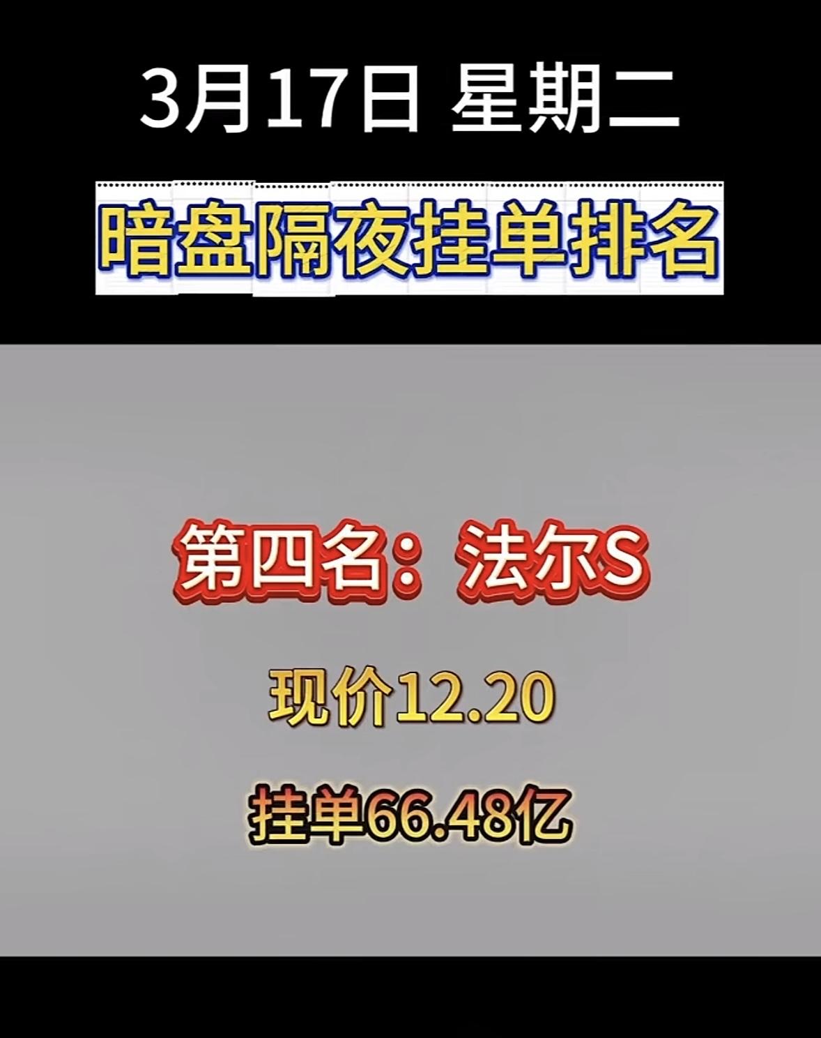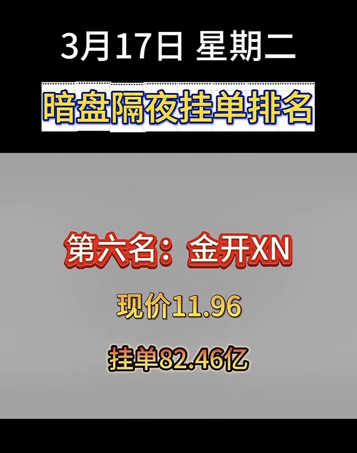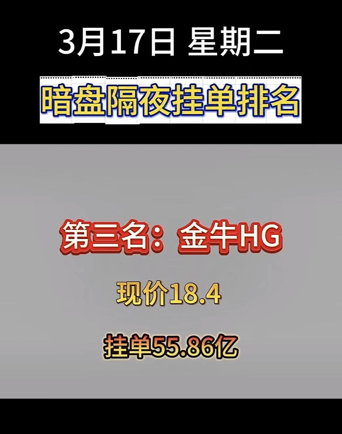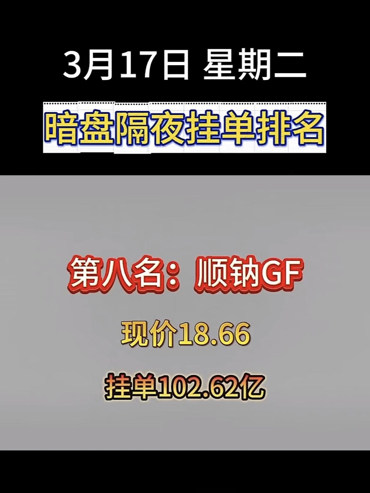 3月17日暗盘隔夜挂单排行榜揭晓 3月17日顺钠股份暗盘隔夜挂单排名第八,这可太引人关注了!现价18.66,挂单102.62亿,这数字相当惊人。此前顺钠股份连收5个涨停板,截至9:25报18.01元,累计上涨61.09%。从3月11日隔夜暗盘挂单看,当时它就以60.1亿挂单排第四,说明资金一直很看好它在电气设备领域的布局。电气设备板块和电力行业升级换代紧密相关,顺钠股份能有这样的挂单量,或许预示着它在未来还有不小的发展潜力,值得持续关注。