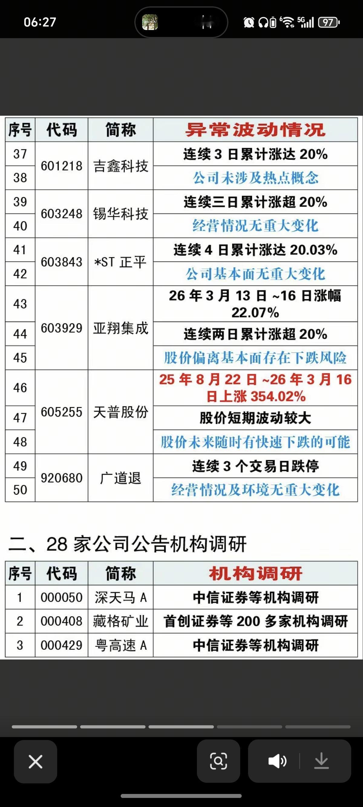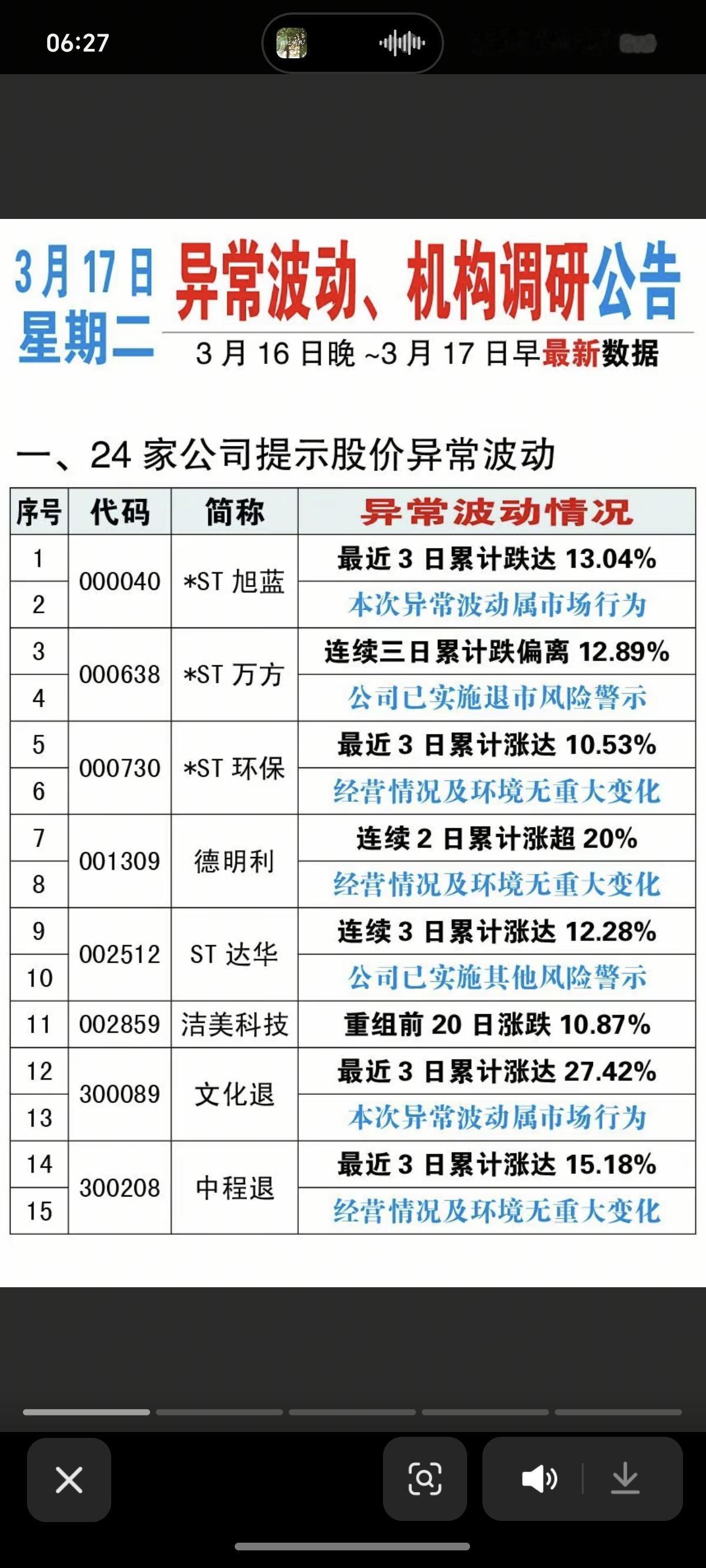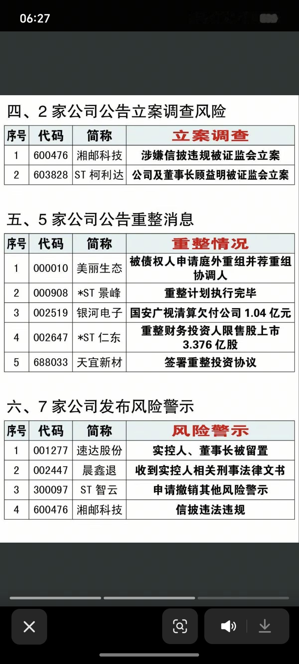 3.17周二 上市公司利空公告汇总! 湘邮科技被立案调查 ST柯利达公司及董事长被立案 4家公司提示终止上市风险 7家公司发布风险警示 5家公司公告重整 5家公司收到监管问询函 24家公司股价异动