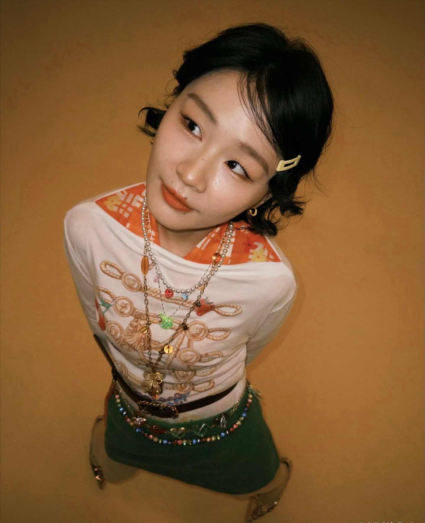 金靖多巴胺写真,拍摄角度很刁钻,但胜在她面部表情丰富,拍出效果挺鬼马少女。金靖现在真的好瘦啊,这么苛刻的角度都把她拍得好瘦好瘦。