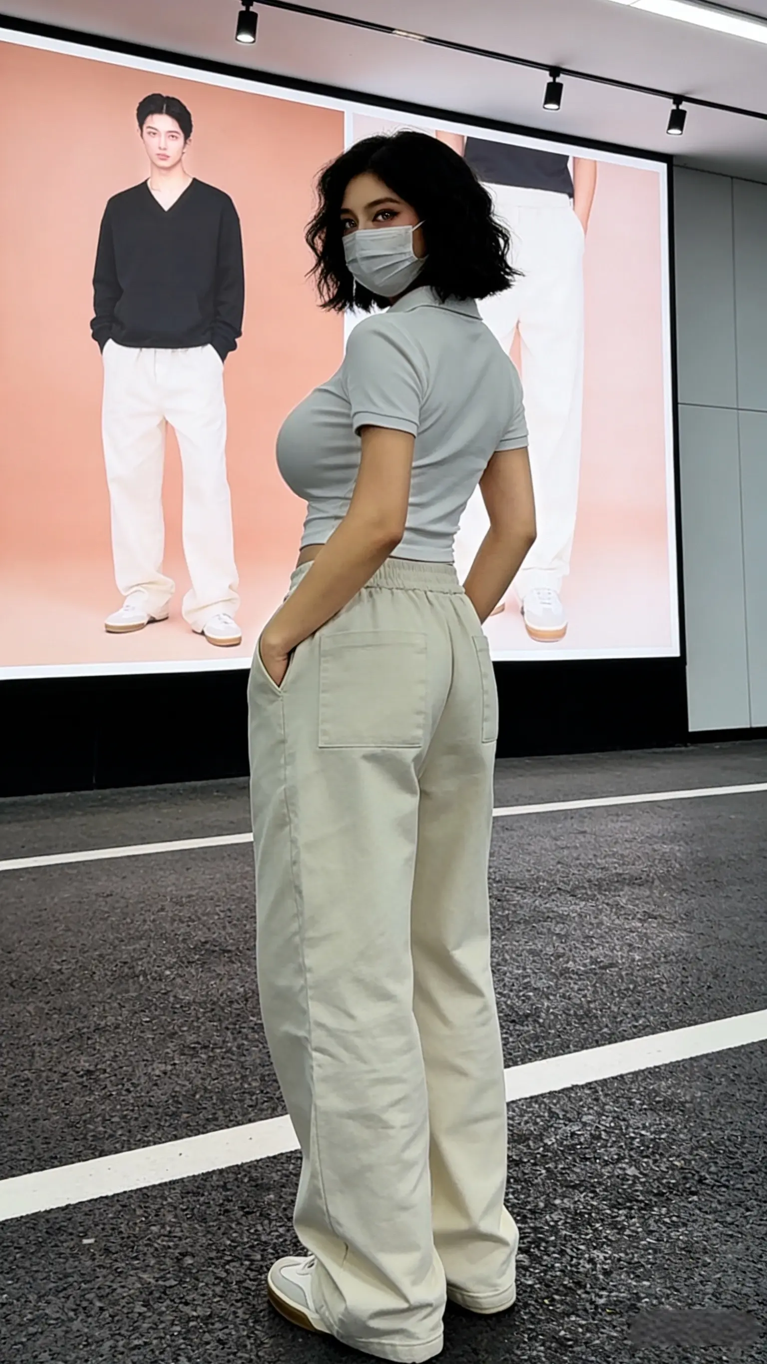赛络松紧法式皱复古打褶纯色弹力磨毛纱卡裤