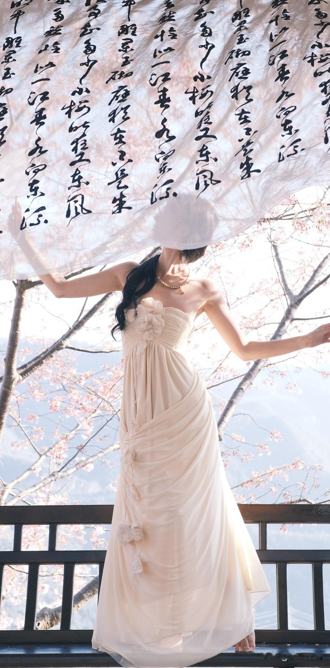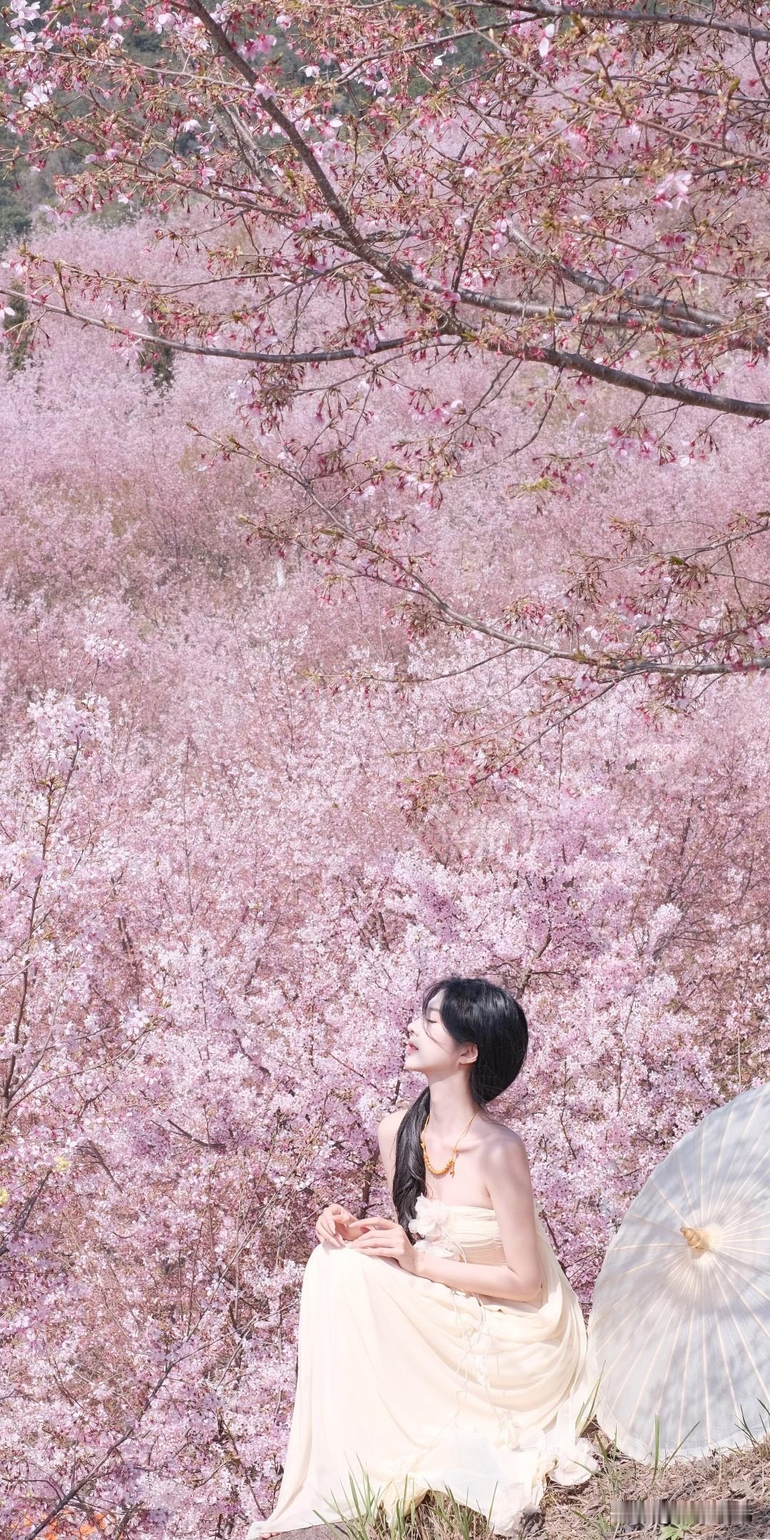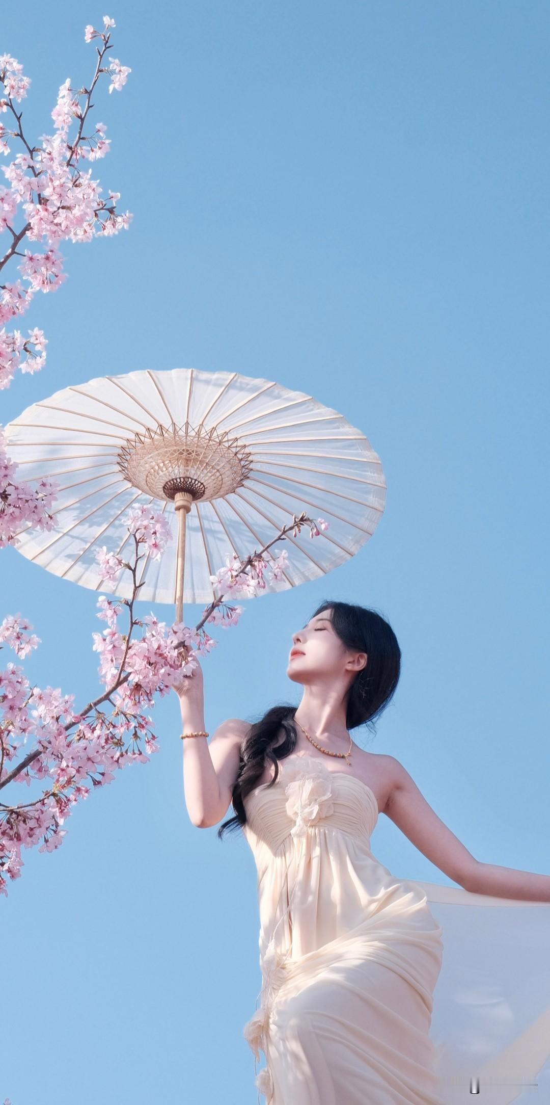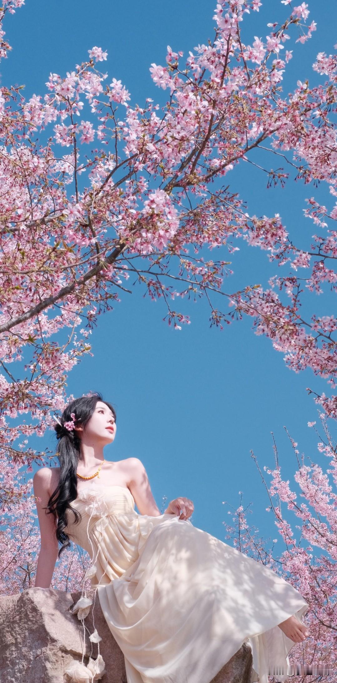 樱花树下,温柔少女,花环点缀,春意盎然。