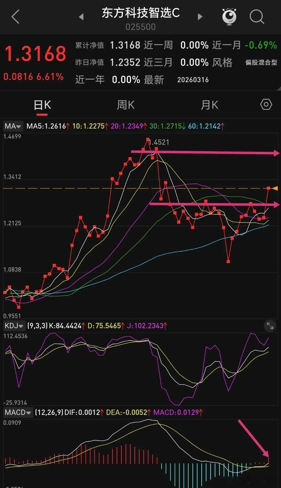 这个存储芯片基金东方科技智选周一大涨6.6%,日线已经突破前面震荡整理区域,接下