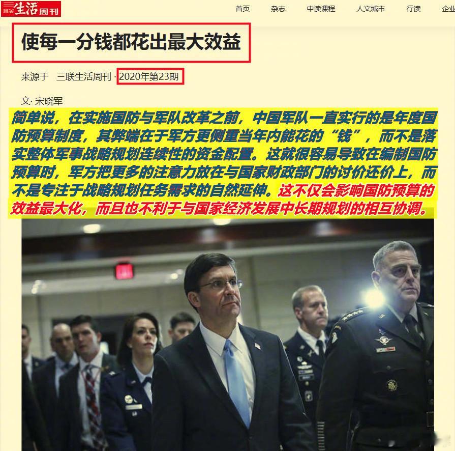 图1:看到今天《解放军报》头版报道的标题;图2:想到了我在2020年时写的一篇专栏文章的标题。简单说,都是引用领导讲的原话。问题是:领导为何在两个“五年规划”开局前都要讲这句话呢?我的理解是,以“裁闲人、除孬人、资源向一线作战部队倾斜”为特征的“大军改”进入到“深水区”时,不仅要继续“裁闲人、除孬人”,更重要的还是要抹去他们之前花钱所形成的陋习、恶习。