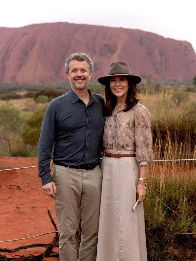 丹麦国王夫妇@澳洲Day1-2[鼓掌] 大玛丽是以王后身份回的娘家, 3/13抵达珀斯,略作休整之后, 第二天来到澳洲心脏乌鲁鲁Uluru观赏最美落日, 此次国事访问共为六天,颇有衣锦还乡之趣[呲牙]