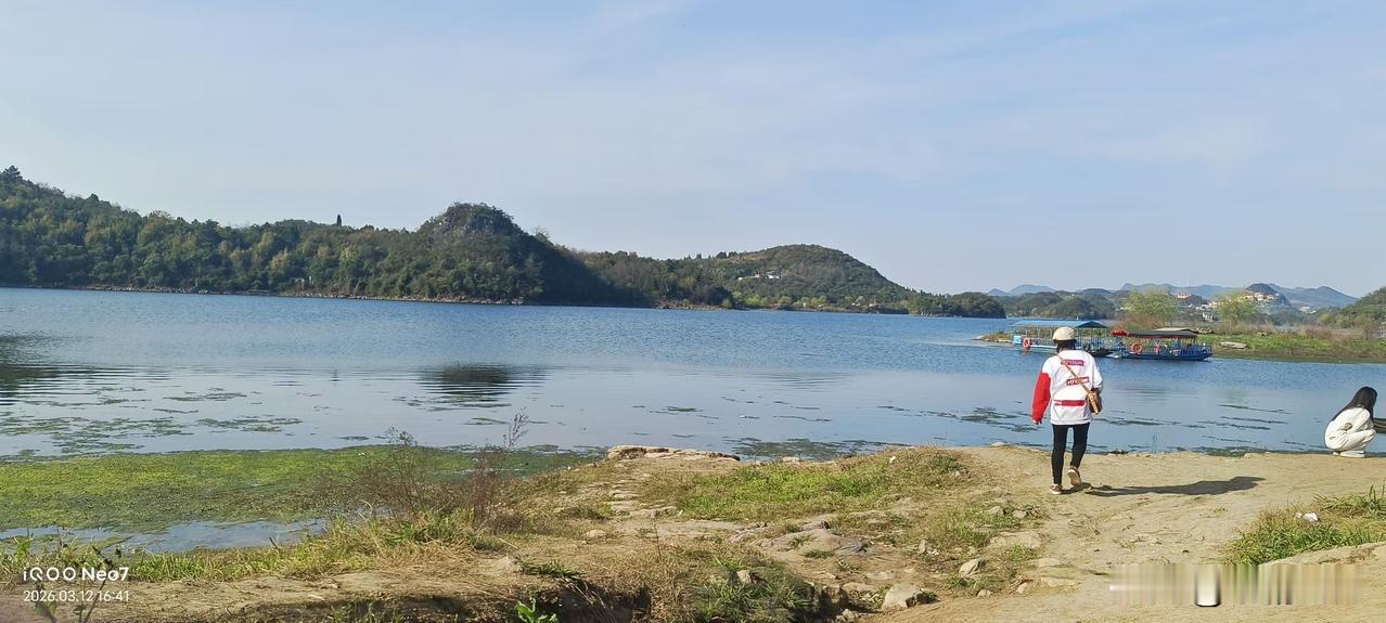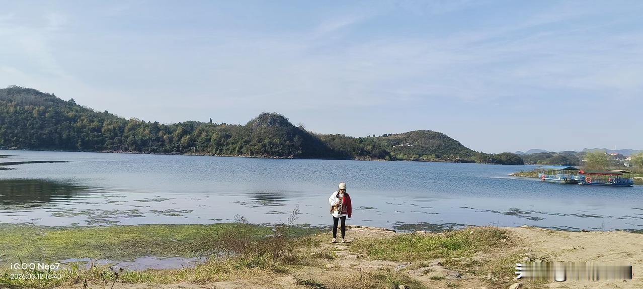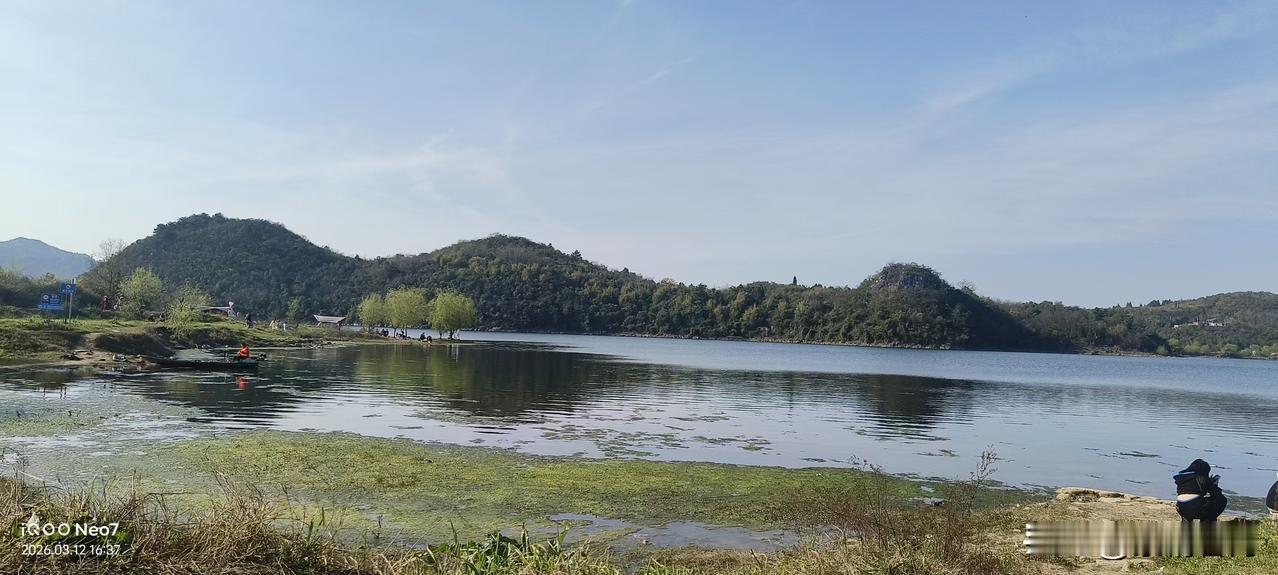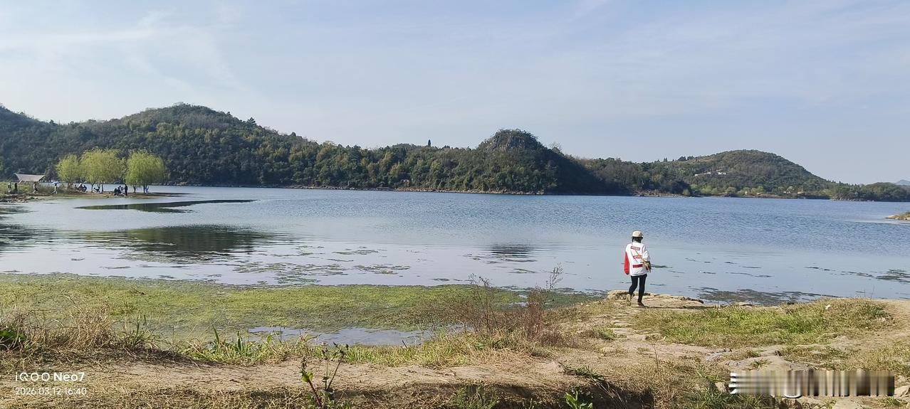 湖水蓝得像块碎镜子,山风裹着草木香往怀里钻。 有人在岸边慢悠悠钓鱼,有人踩着石头路晃悠,连水里的水草都在跟着风晃。 没什么要紧事要做,就想在这儿多待一会儿,把日子过成慢悠悠的模样。