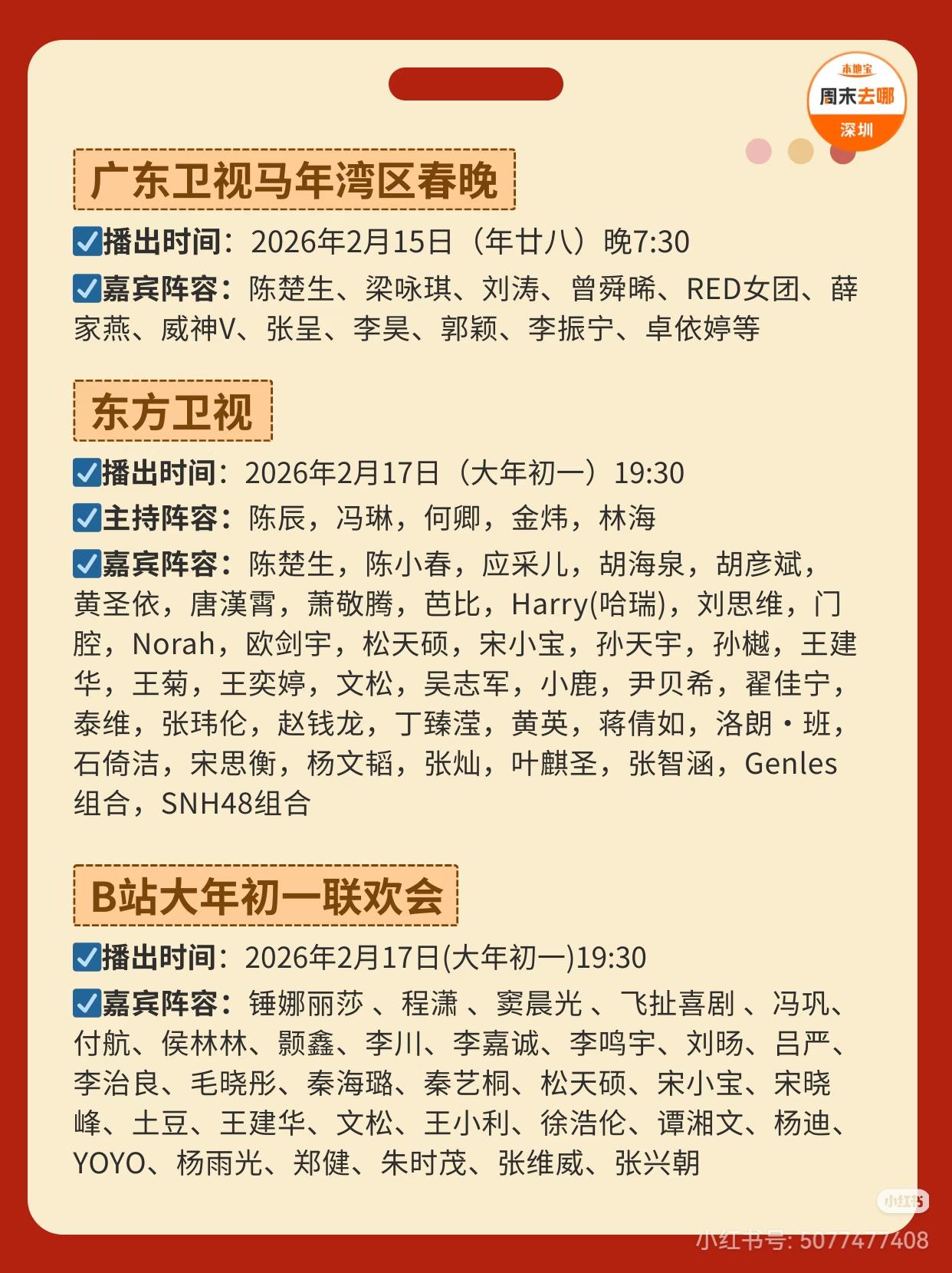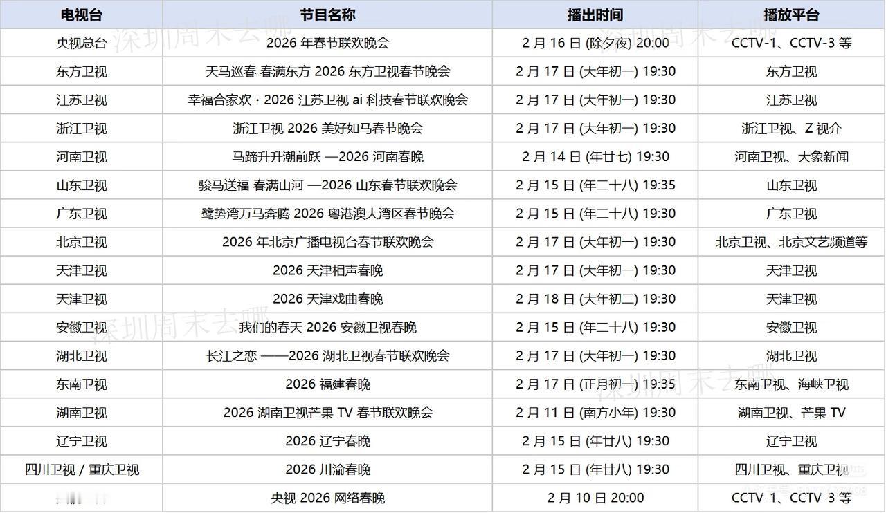2026年各大卫视春晚播出时间及阵容汇总