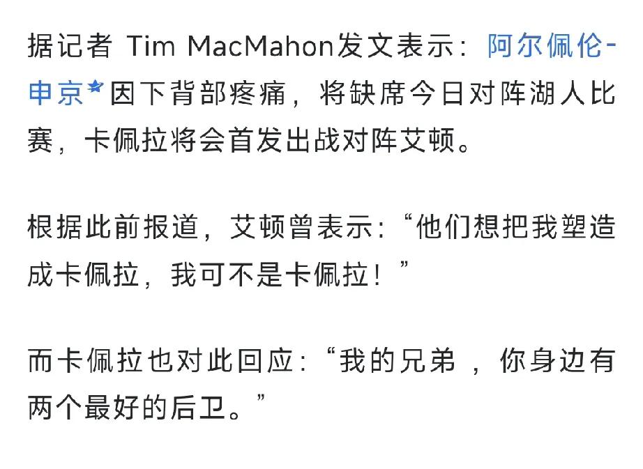申京真懂事,这下火箭湖人大战好戏多了,除了原本的大小王之战外,现在还有真假卡佩拉证明之战了,艾顿曾经不屑的说:我不是卡佩拉。如今真正的卡佩拉就摆在眼前,现在要看看艾顿到底是不是卡佩拉,还是不去卡佩拉呢!