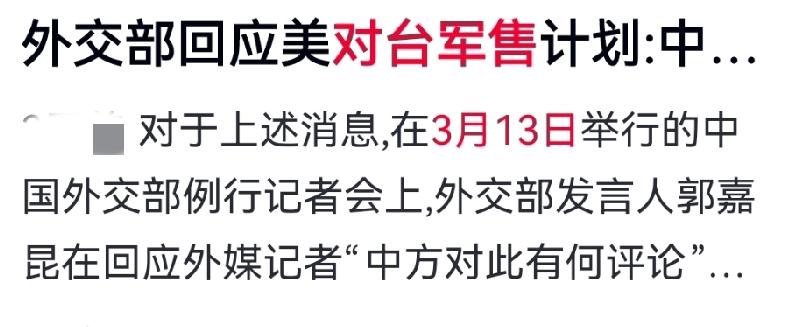 美对台军售?不过是螳臂当车,加速统一的历史倒计时! 3月13日,美方又一次对台军售。表面打着“防御”的旗号,实则干着搅局的勾当。他们递过来的不是“安全盾牌”,而是捆在台湾同胞身上的“火药桶”! 看清楚了,那些所谓的武器,不过是美国军火商清空的过期库存;那笔天价账单,是让台湾背上沉重枷锁的“夺命契”。台当局甘愿为奴,引狼入室,殊不知此举正把台湾推向险境。 但世界早已不是列强横行的那一套。今天的中国,有足够的耐心表达善意,更有绝对的底气粉碎挑衅! 国家主权,是一道不能讨价还价的门槛;领土完整,是14亿人钢铁般的意志。我们不惹事,更不怕事。任何妄图分裂的行径,都是在给统一大业按下快进键。 请相信,东风浩荡,大势所趋。螳臂当车者,终将被碾碎在历史的车轮之下。中国必将统一,也必然统一! 对此,你怎么看? 美国对台军售 中国主权不容侵犯