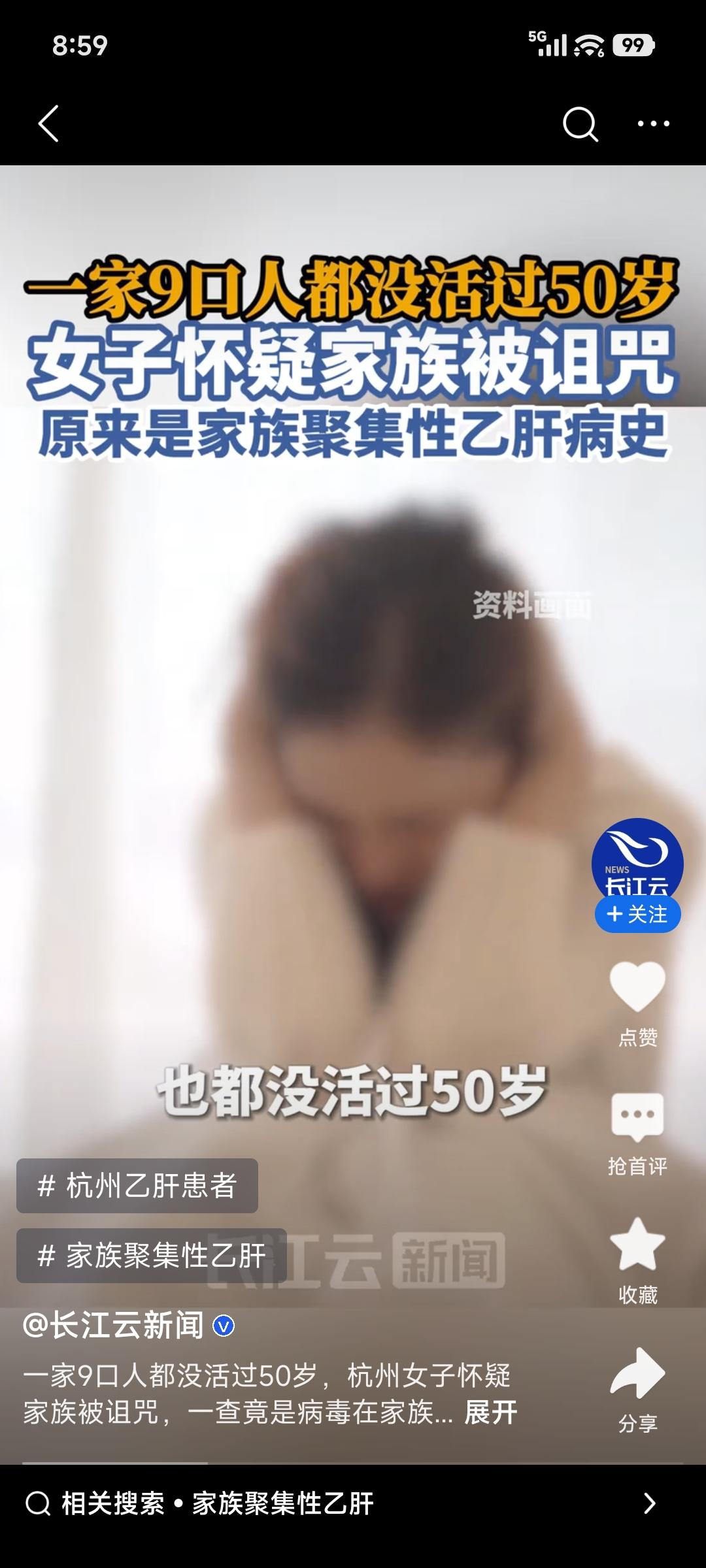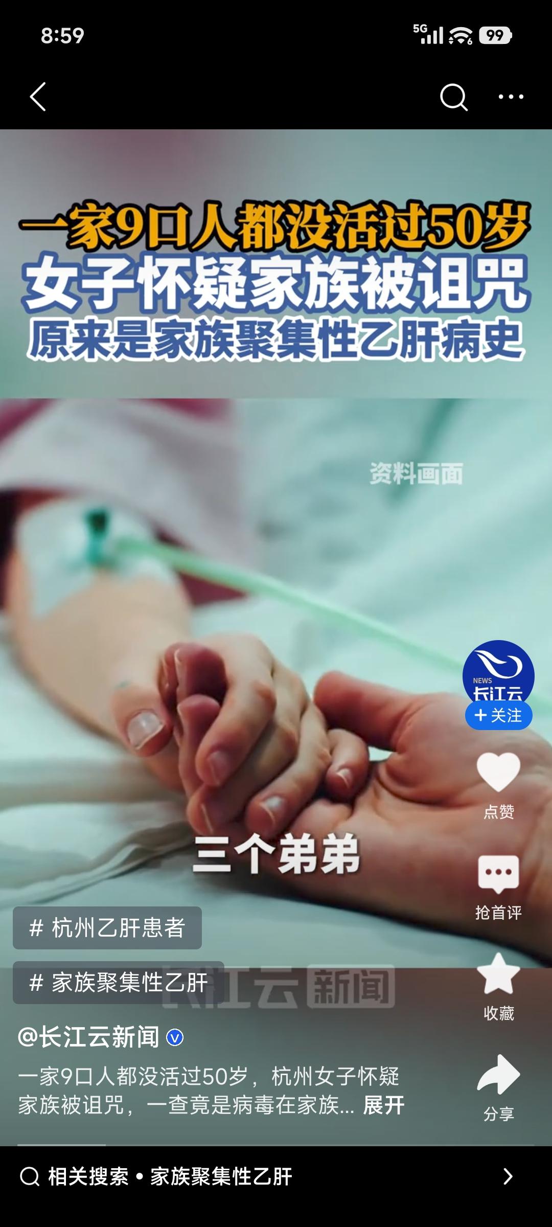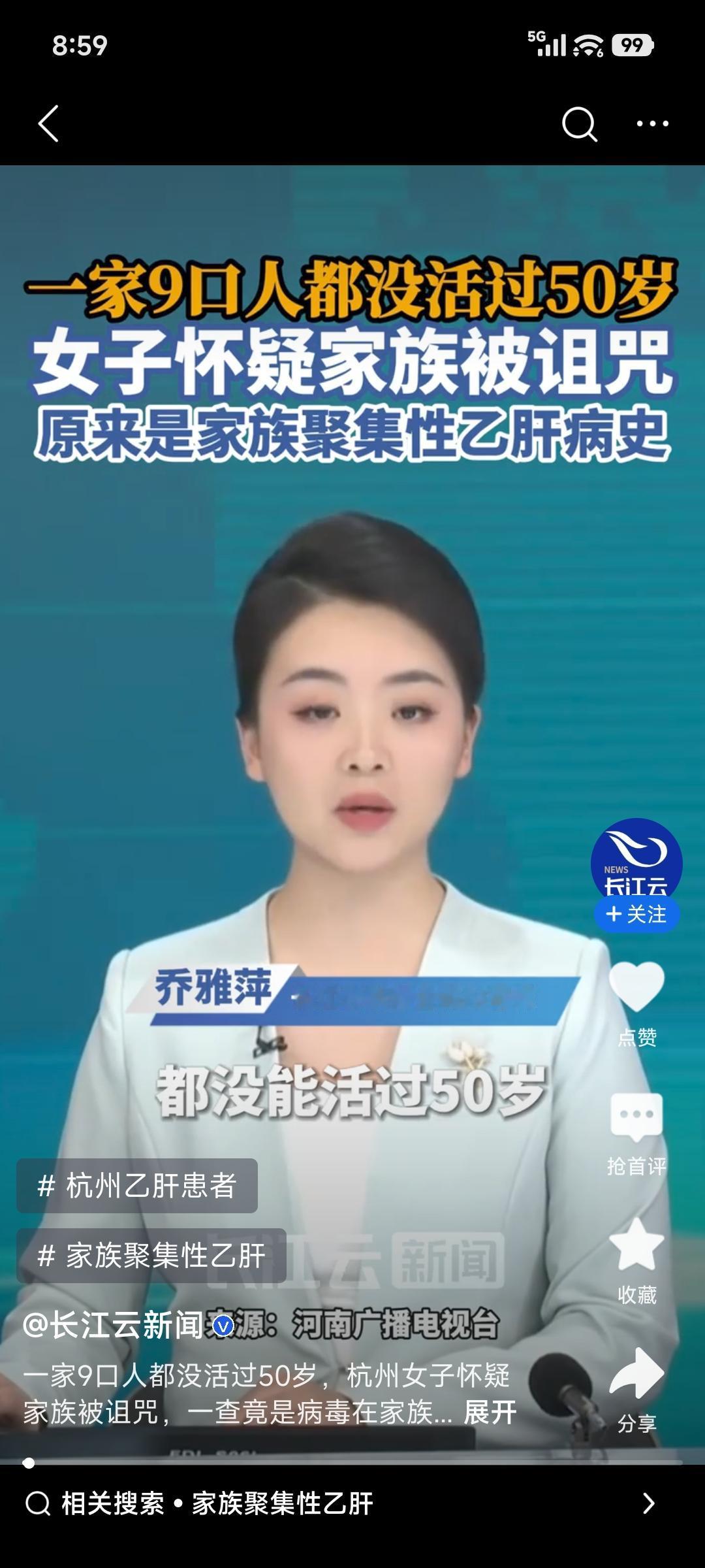 杭州萧山48岁的陈阿姨一直慌得不行,觉得自己活不过50岁。她有个姐姐、三个弟弟,不到50岁就离世了,妈妈那辈四五个兄弟姐妹也没活过50岁。家里人去世前要么肚子肿大,要么右上腹隐痛,确诊不是肝硬化晚期就是肝癌。 陈阿姨越临近50岁,越觉得浑身乏力、食欲差,认定“诅咒”轮到自己,赶紧去了医院。结果一查,是乙肝后肝硬化早期。原来家族有聚集性乙肝病史,过去医疗条件有限,乙肝病毒没得到有效控制。这哪是什么诅咒,就是疾病在作祟,大家有家族病史一定要早检查!