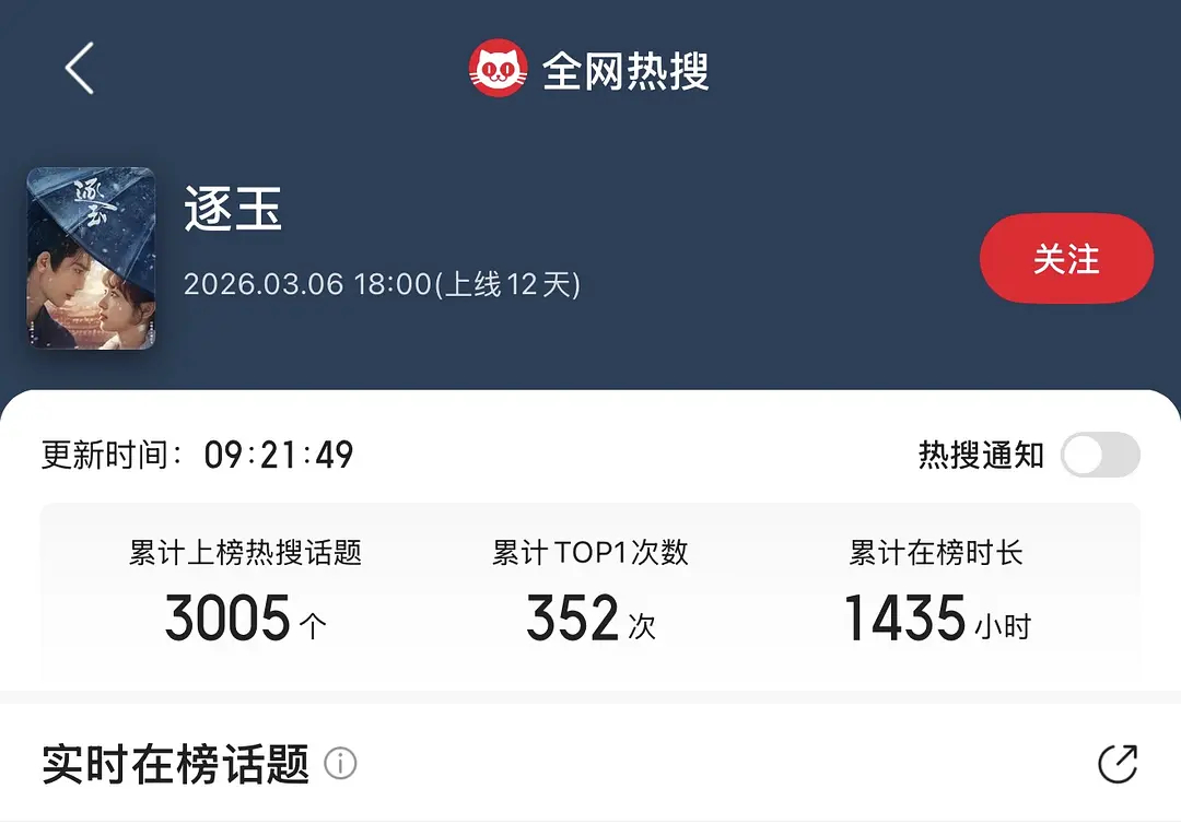 大爆剧《逐玉》上线10天+,热搜3000+,还要播半个月。