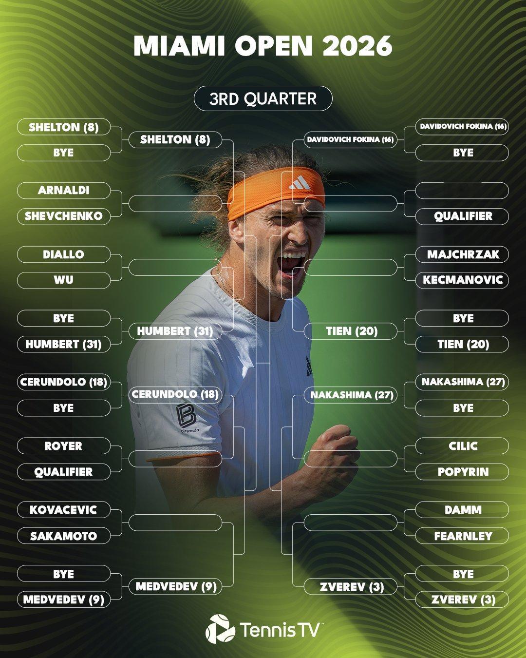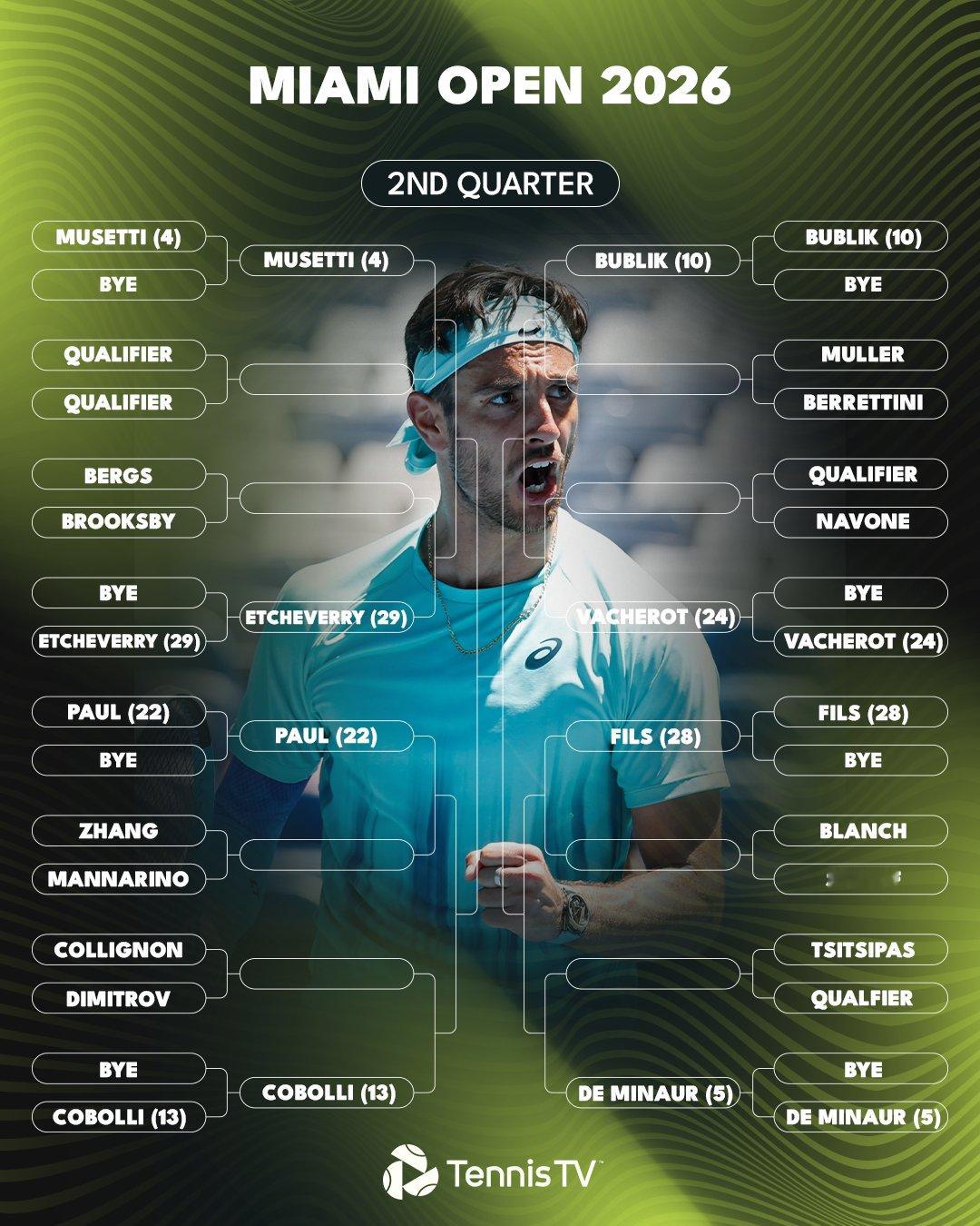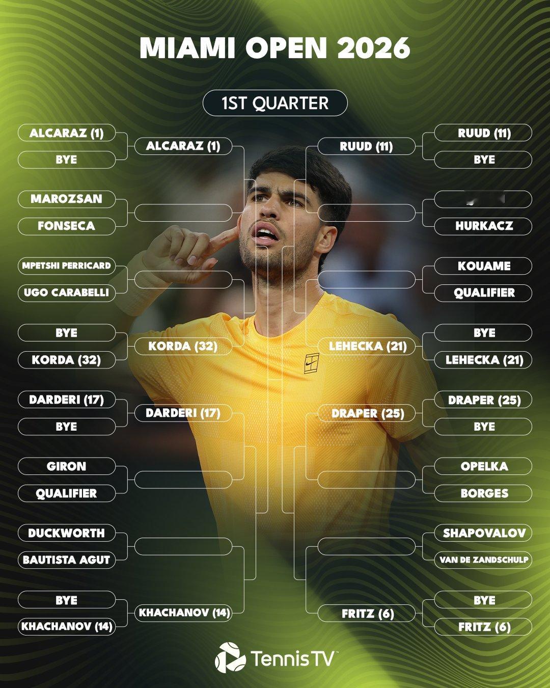 中国选手方面,吴易昺首轮对阵迪亚洛,次轮对位安贝尔。张之臻首轮对阵马纳里诺,次轮对位保罗。