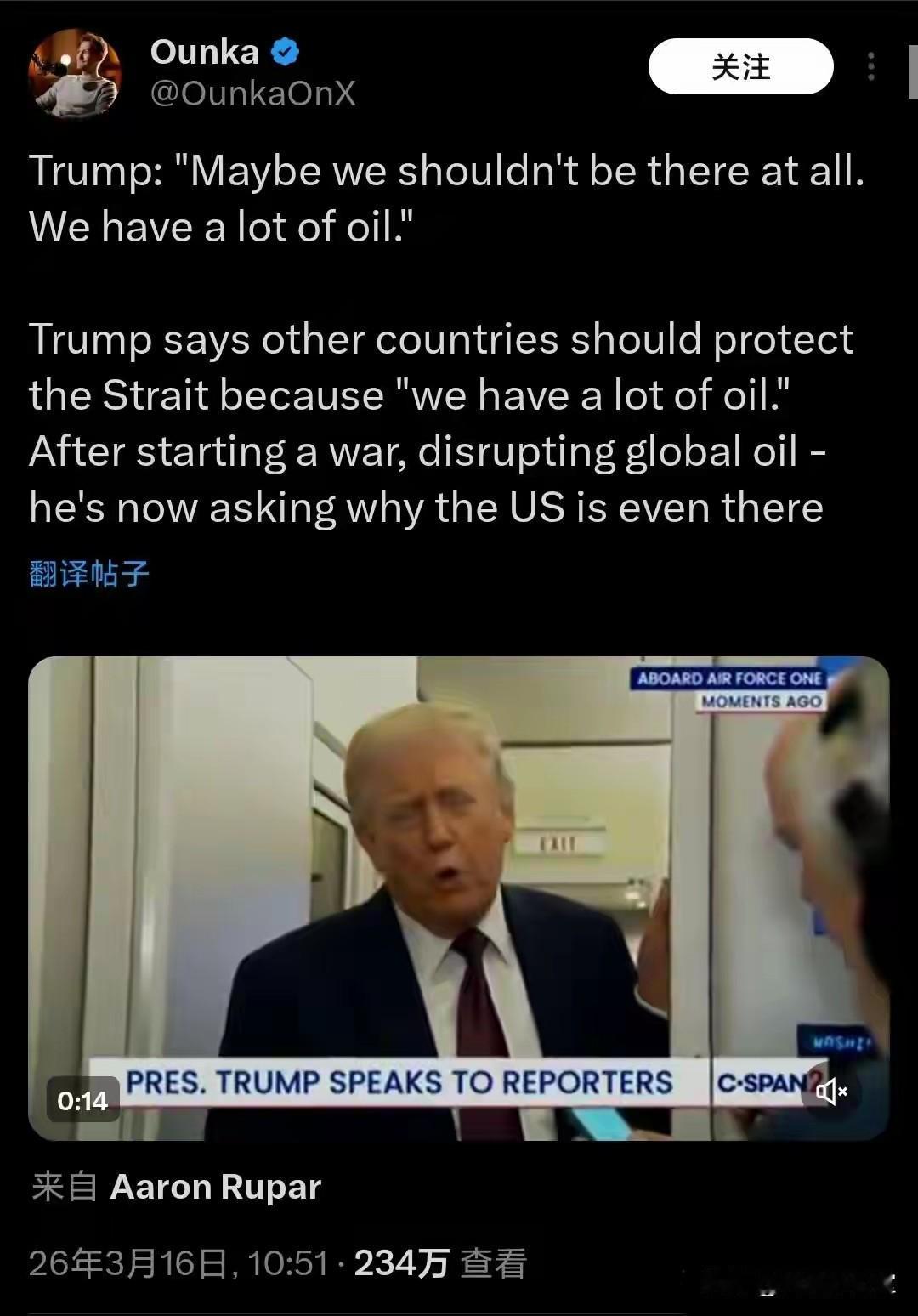 特朗普:也许我们根本就不该待在那里,我们自己有的是石油。