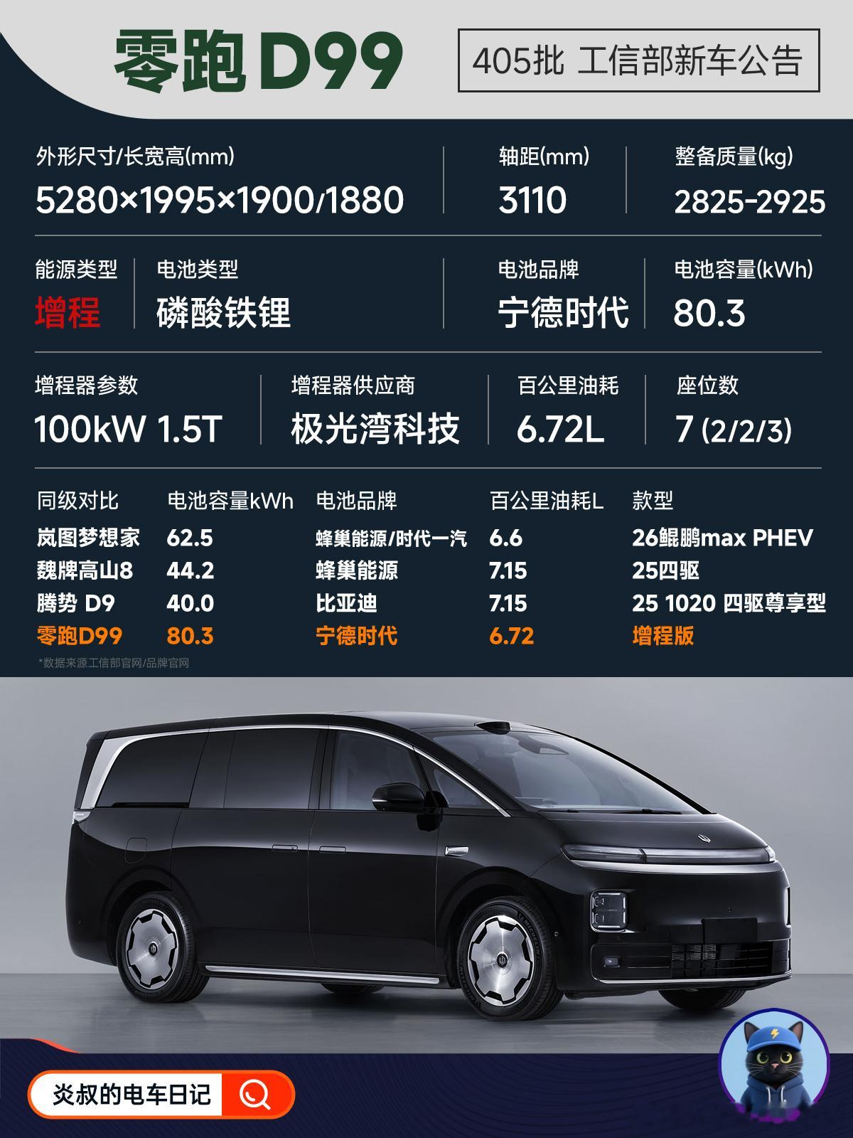 零跑首款旗舰MPV:D99工信部公告解读!