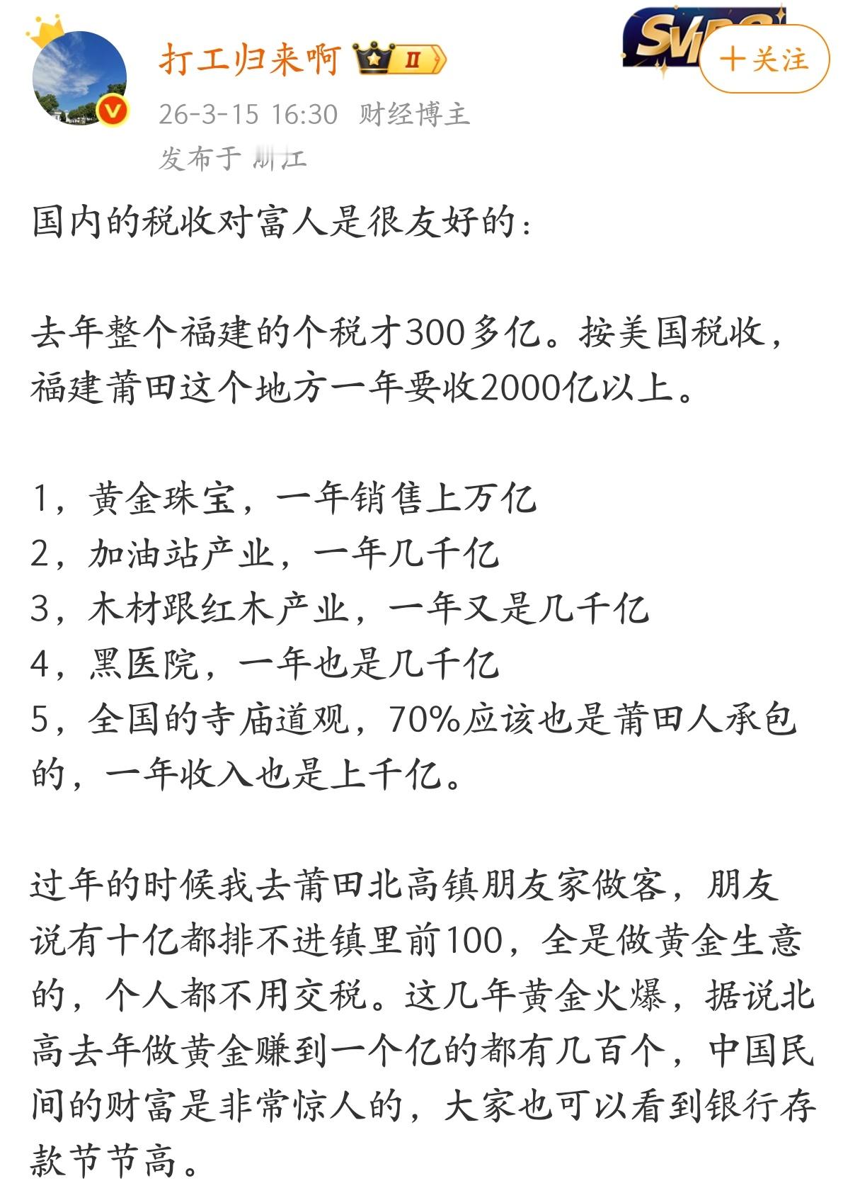 国内的税收对富人是很友好的。