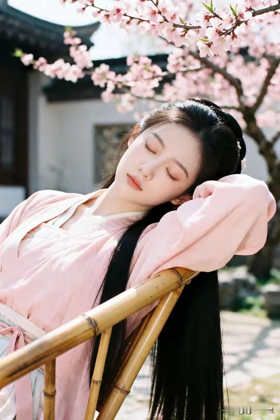 看来这是新品种, 花梗要比钢筋硬。 美女坐上像板凳, 空中楼阁仙境中。