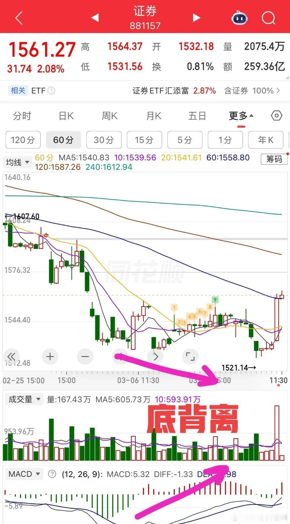 盘中提示🔔:市场需要增量!昨天讲过证券有60分钟底背离反弹条件,今天确实反弹了,但市场量并未放大,并且个股也没有跟随,这种盘面表现是不强势的,比较割裂。技术面的角度,需要放量突破站上均线才行,否则就不能认为调整结束,还有再次下探的可能。
