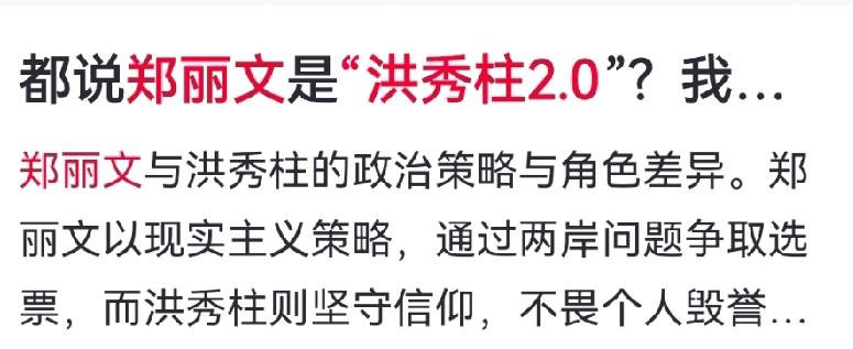 别再乱贴标签!郑丽文不是洪秀柱2.0,根本不是一路人! 把郑丽文叫作“洪秀柱2.0”,太浅了!两人看似都是敢说“我是中国人”的国民党女主席,但出身、底色、格局天差地别。 洪秀柱一生忠于国民党,从一而终,反“台独”、坚持一中是刻进骨血的信仰。哪怕被党内“换柱”、受尽打压,她也从未妥协,耄耋之年仍为两岸统一奔走,是真正为信念不惜一切的“深蓝柱柱”。 郑丽文则是从民进党转投而来,早年深耕绿营近十年。如今强硬表态两岸立场,更多是服务2026选举、争取民意的战略选择,核心目标是赢选举、夺执政,而非死守统一大义。 一个为道统坚守,一个为胜选布局;一个是理想主义者,一个是务实操盘手。看清这一点,才算读懂台湾政局。 对此,你有何认知度?欢迎各位读者来评论区讨论留下你的认知度! 两岸关系 郑丽文 洪秀柱 台湾政局