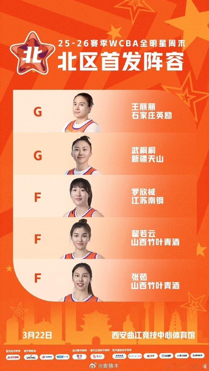 WCBA联赛公布2026WCBA全明星周末 正赛首发名单:南区首发杨力维、杨舒予、黄思静、陈明伶、高颂,杨力维以224706票当选南区票王和总票王。北区首发王丽丽、武桐桐、罗欣棫、翟若云、张茹,武桐桐以134529票当选北区票王。