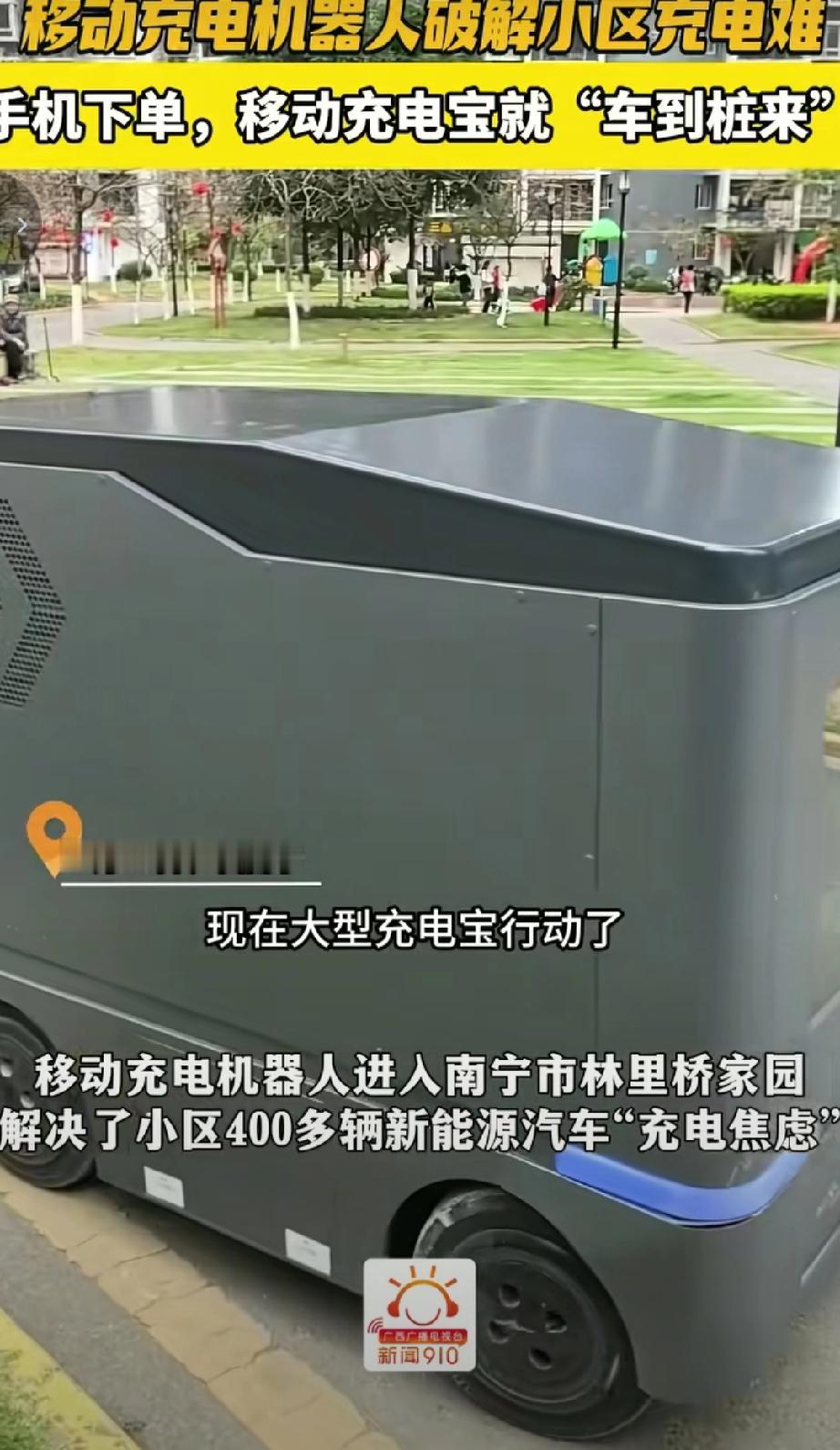 3月16号时代聚能科技公司的,移动充电车,进入南宁林里桥家园小区为小区400多新能源汽车解决烦恼,客户只需要在app下单填写停车位置信息,移动充电车就会自动到跟前给车子充电,充电完成后自动结算费用等,非常的方便不用到处找充电桩。(来源于@广西台新闻910)