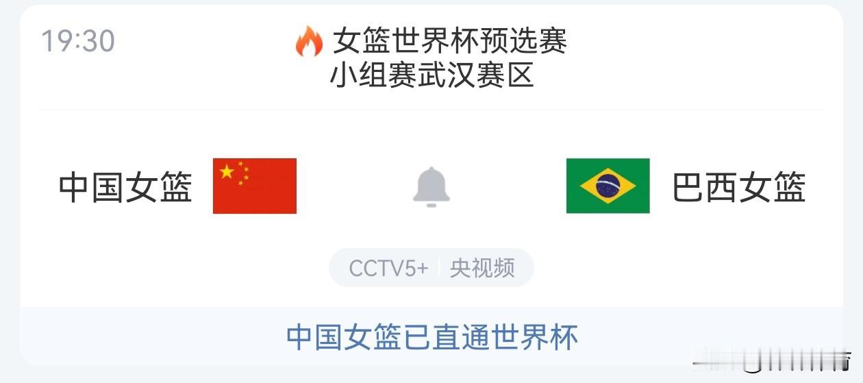 CCTV5直播有变,中国女篮世预赛武汉赛区,今天将进行最后一轮比赛,在已经结束的4场比赛中,中国女篮以3胜1负的成绩积7分排名小组第二,提前获得了世界杯入场券,原计划今天由央视CCTV5直播的,中国女篮对阵巴西女篮的最后一场比赛,改由CCTV5+进行直播,中国女篮在世预赛开始前的热身赛曾经两胜巴西女篮,理论上巴西女篮还没有稳妥的拿到晋级世界杯的入场券,所以本场比赛巴西必然会跟中国女篮死拼到底,中国女篮在已经确保出线的前提下,必然会以锻炼新人为主,通过高强度的对抗,寻找球队的短板,争取在世界杯开始前将女篮状态调整的最佳。