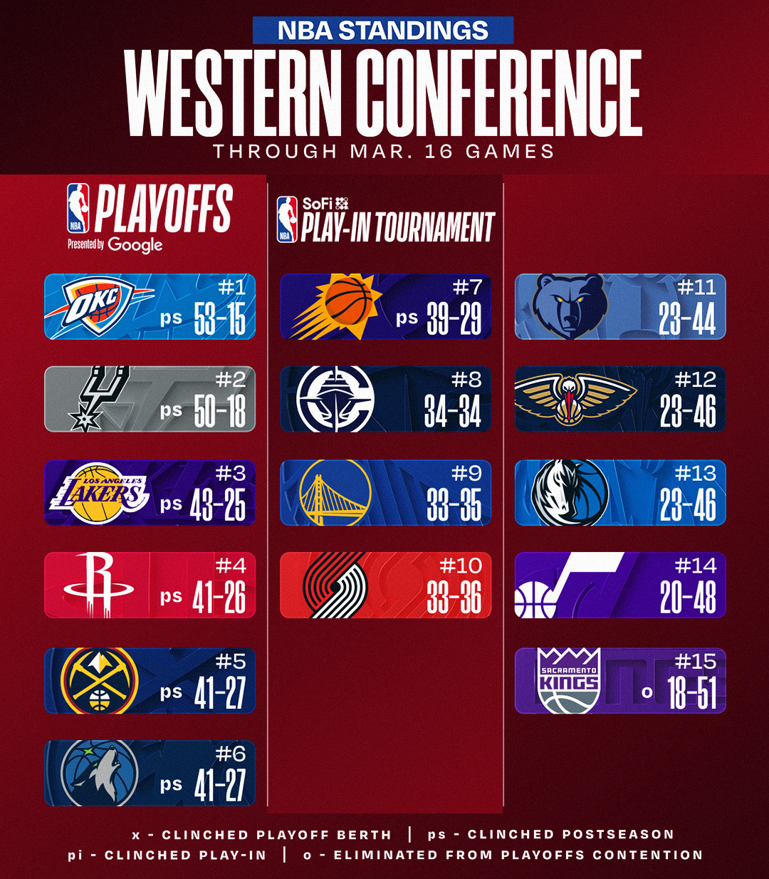 今日赛后排名更新,湖人坐稳西部第三。NBA
