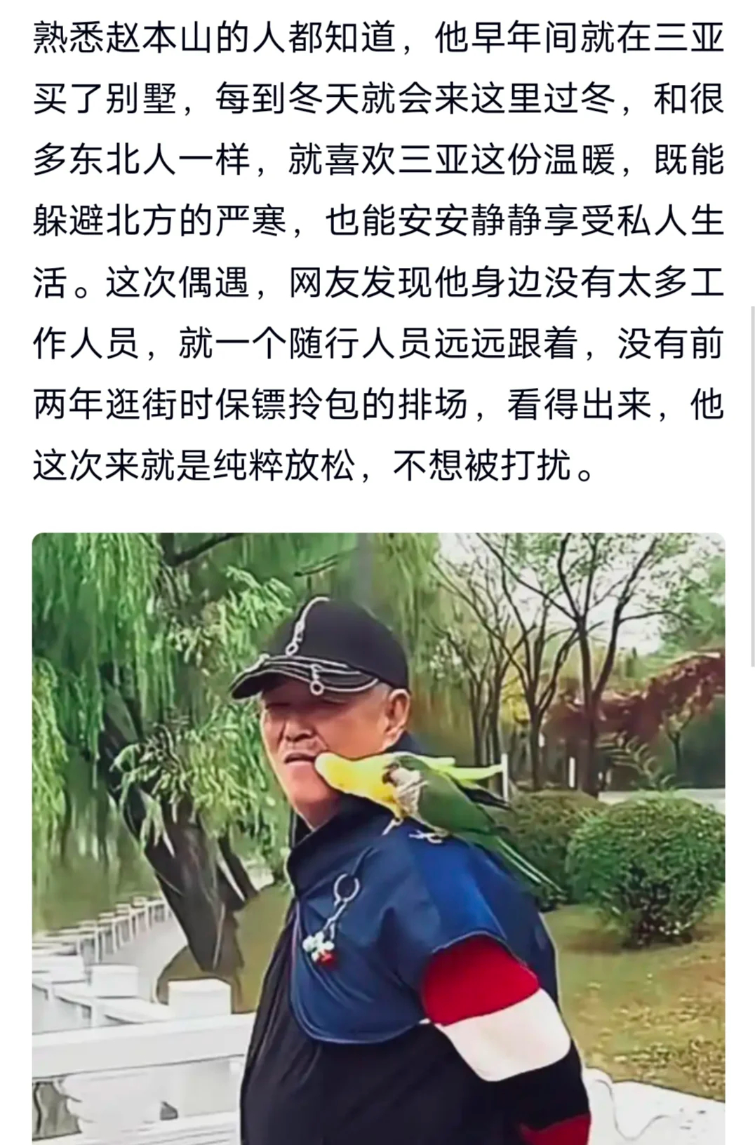 赵本山近况 童年回忆杀啊!小时候年夜饭都吃不踏实,非得守着电视等本山大叔的小品,《卖拐》《不差钱》的台词到现在都能顺嘴背出来老艺术家辛苦一辈子了,现在平安喜乐就足够了。