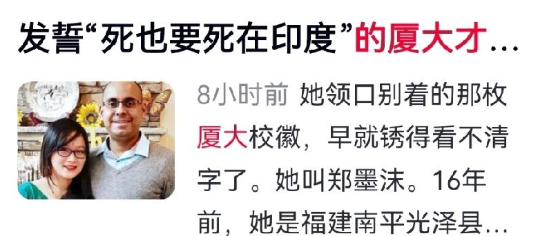 当年叫嚣“远离中国”的厦大才女,如今跪求回国被拒:对不起,中国不是你呼之即来挥之即去的备胎! 她是厦大金融系高材生,曾是父母眼中的骄傲,却为了嫁给印度男人,亲手撕掉了中国国籍。 她叫郑墨沫。2009年,她在美国伯克利交流时结识印度高种姓男子拉杰·辛格,明知对方已有正妻,仍甘愿做“二房”。为讨好夫家,她改名“辛格莫默”,打鼻环、喝洗脚水、主动放弃中国国籍。 更让人愤怒的是,她开始在社交平台疯狂抹黑祖国:“珍爱生命,远离中国”。她把恒河吹成圣河,把孟买捧得比福建“好一万倍”,甚至组建十几个群,忽悠国内女孩嫁到印度。 可现实给了她一记响亮的耳光。 2020年疫情暴发,印度医疗崩溃,美国也沦陷。她吹捧的“天堂”成了人间地狱,丈夫带原配逃往美国,她被扫地出门。走投无路之下,她想起那个被她百般诋毁的祖国——中国成了全球最安全的地方。 她向中国大使馆递交回国申请,一次、两次、三次……全部被拒。 理由很简单:你早已不是中国人。国籍不是情绪按钮,不是你风光时就抛弃、落魄时就捡回来的工具。 有人说:这不就是现实版的“端起碗吃肉,放下筷子骂娘”吗? 我想说:人可以追求更好的生活,但不能为了向上爬就踩着自己的根。你可以选择远方,但别在离开后回头唾弃生你养你的土地。祖国从来不是谁想来就来、想走就走的客栈。 如今,郑墨沫被夫家抛弃,流落美国,曾经吹嘘的“豪门梦”碎了一地。有网友评论:“忘恩负义的人,终究会自食其果。” 对此,你有何认知度?