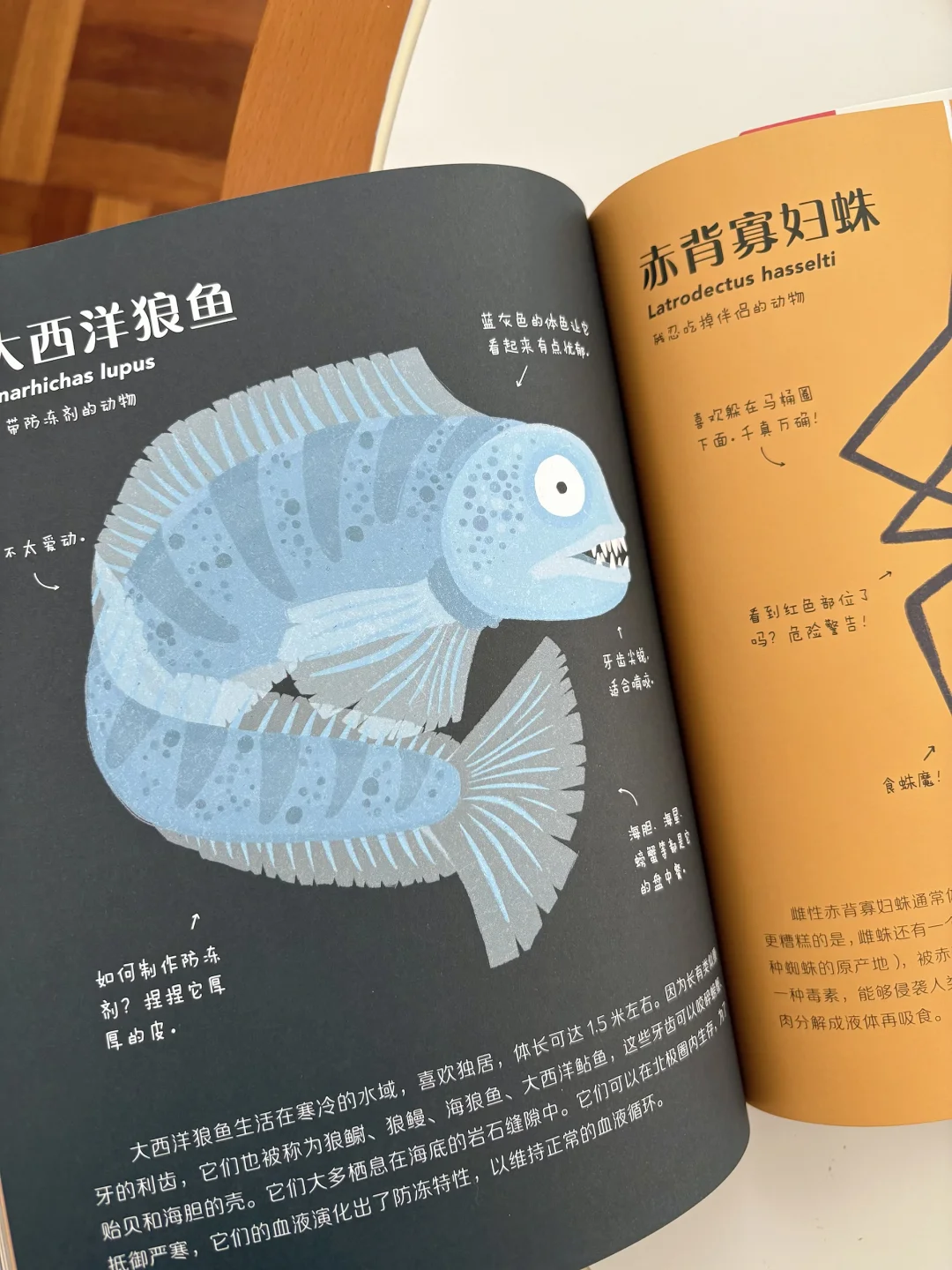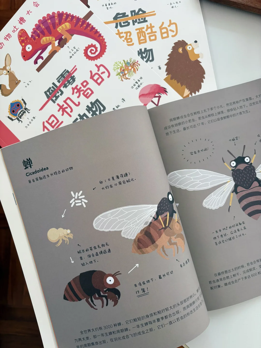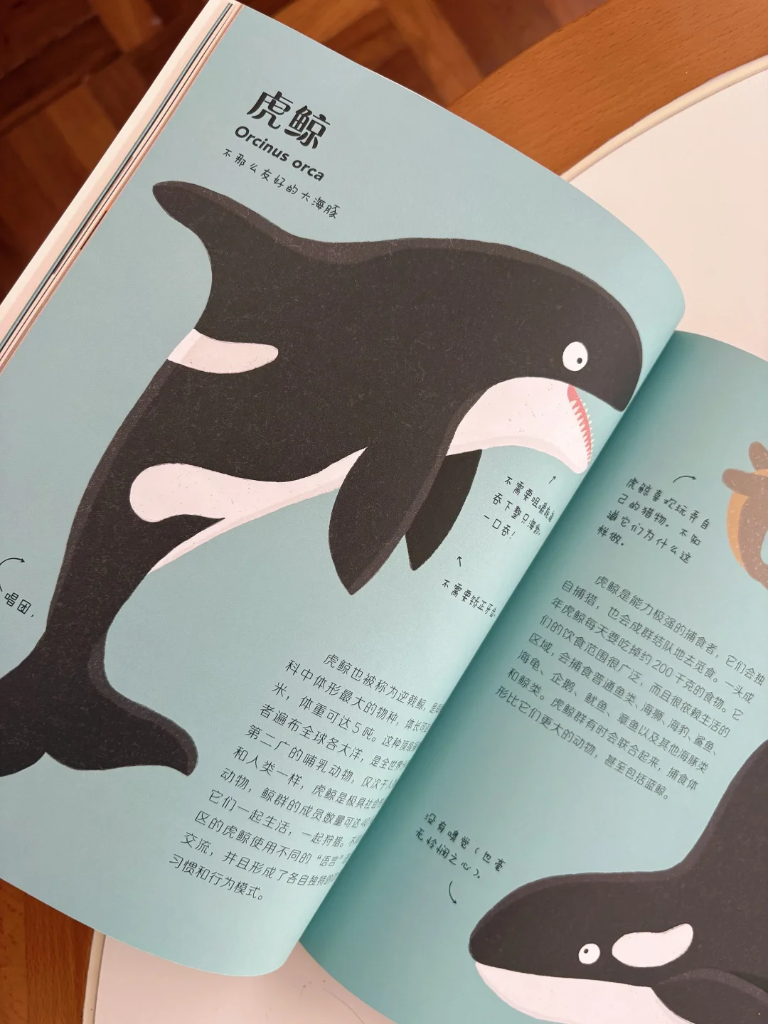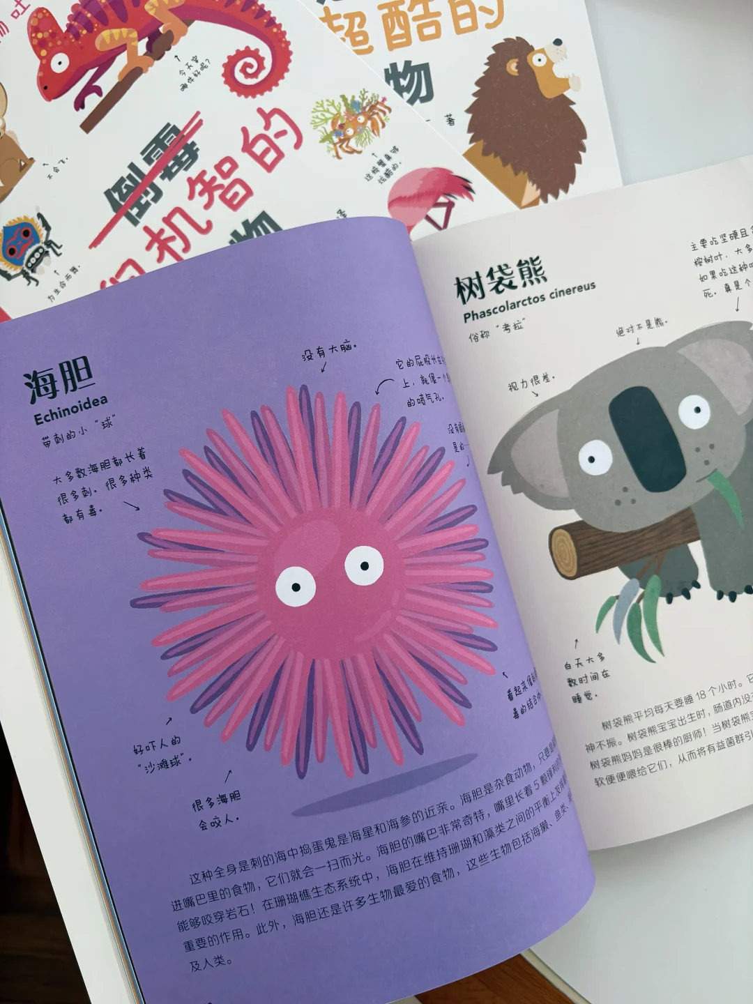 这套书的讲述方式,不是干巴巴的介绍,而是用很温和的吐槽语气,加上拟人的写法,把动物们的习性讲得清清楚楚。比如讲考拉,会调侃它“除了睡就是吃,主打一个躺平式生存”,但也会认真说,这是它为了消化桉树叶养成的习性,藏着大自然的生存智慧。