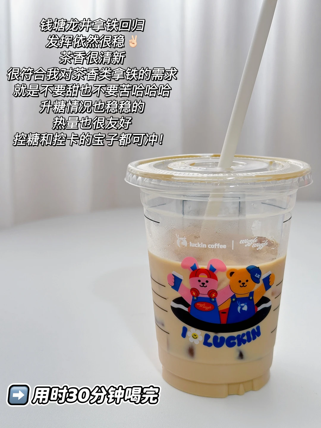 钱塘龙井拿铁回归,发挥依然很稳✌🏻茶香很清新,很符合我对茶香类拿铁的需求,就是不要甜也不要苦哈哈哈〰️升糖情况也稳稳的,热量也很友好,控糖和控卡的宝子都可冲!