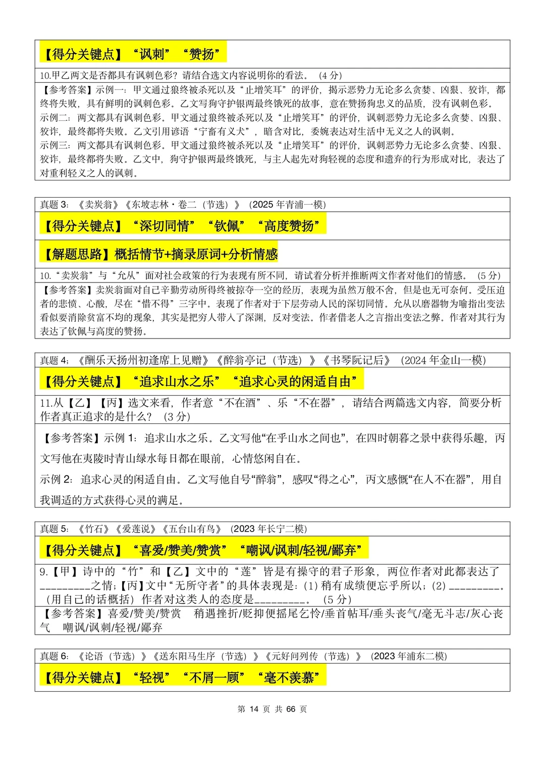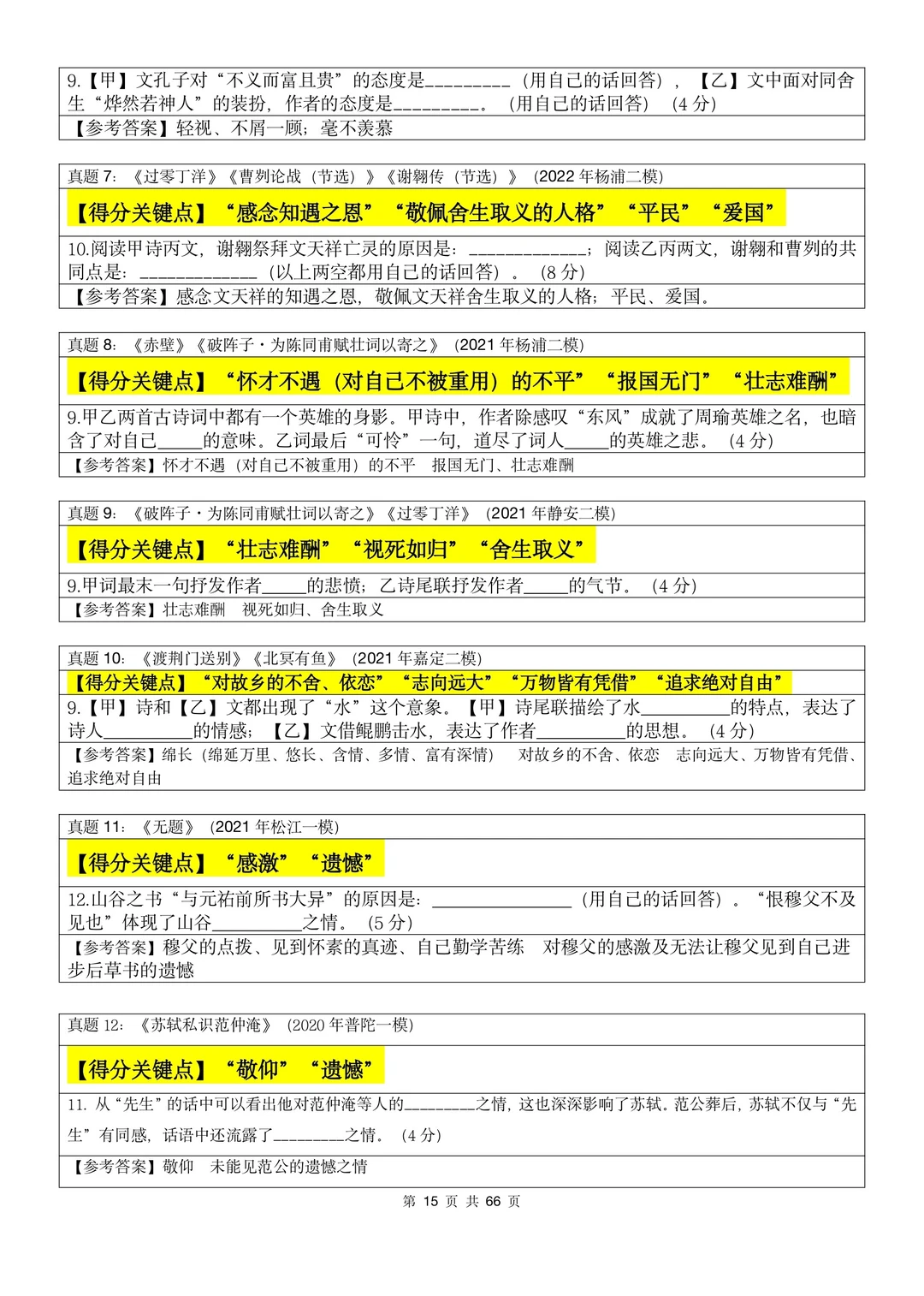 文言文考点➕题型库3:情感态度(3000字)