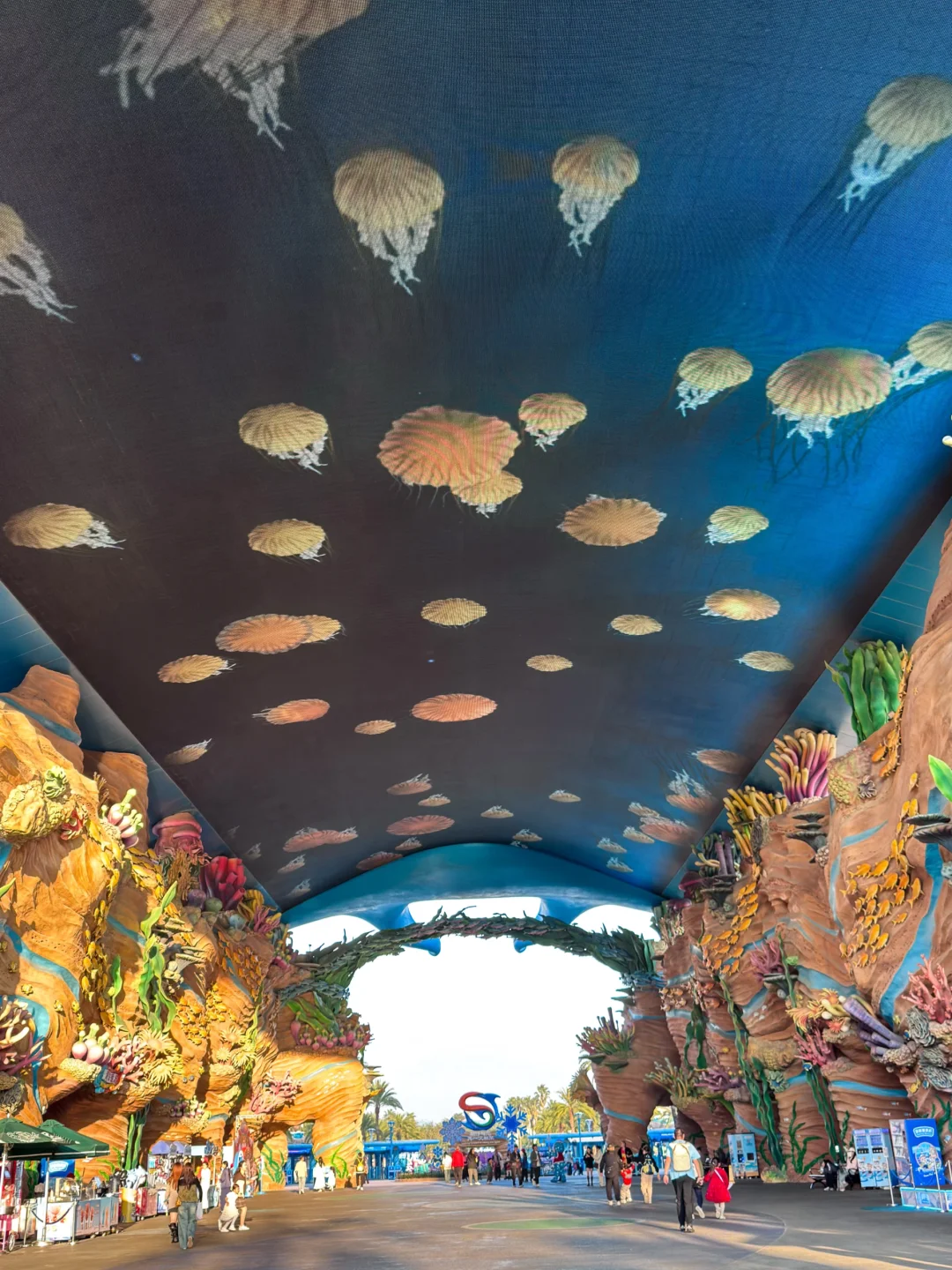 [向右R]最惊喜的是园区的布局,整个公园横跨两个山体,通过缆车和海洋列车连接两个园区,给游客带来全新独特的体验。