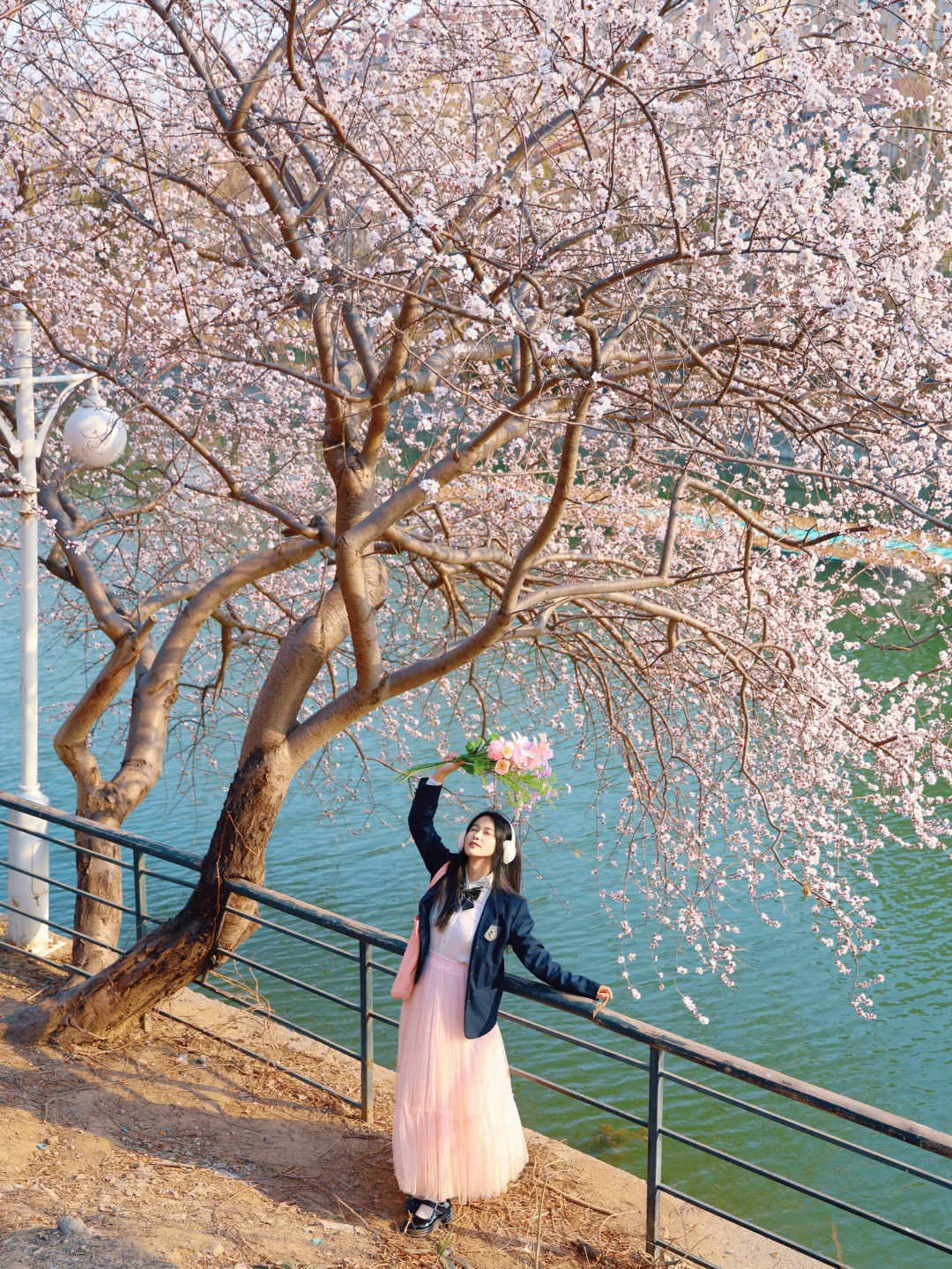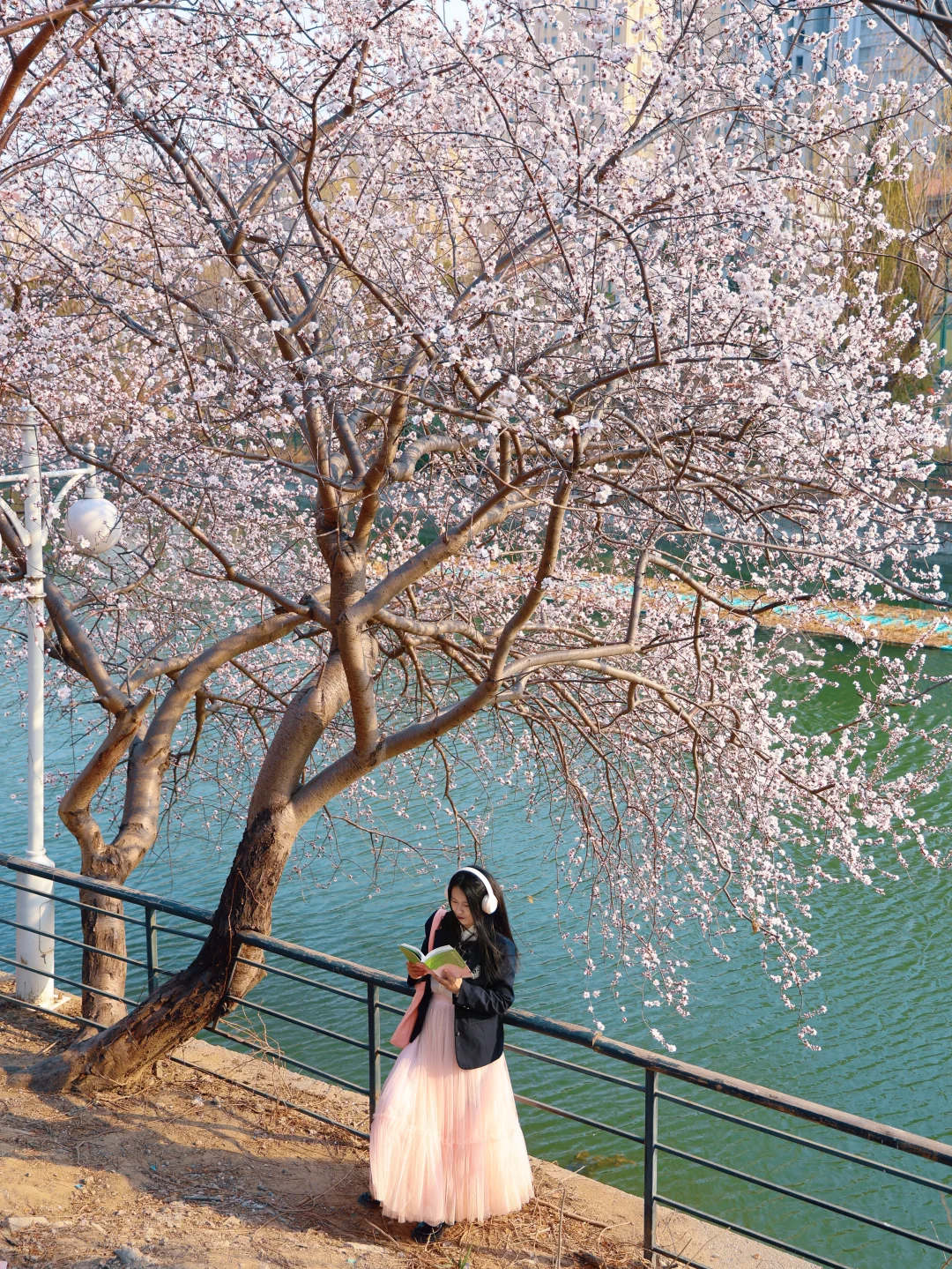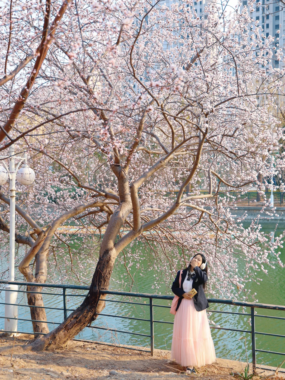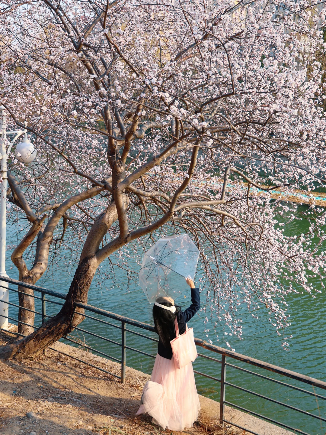 别去桃花堤人挤人了 绿道公园这颗神树就是一整个春天 水岸桃花,下午15点光影适合人像 🅿️车可以临时停在桥上