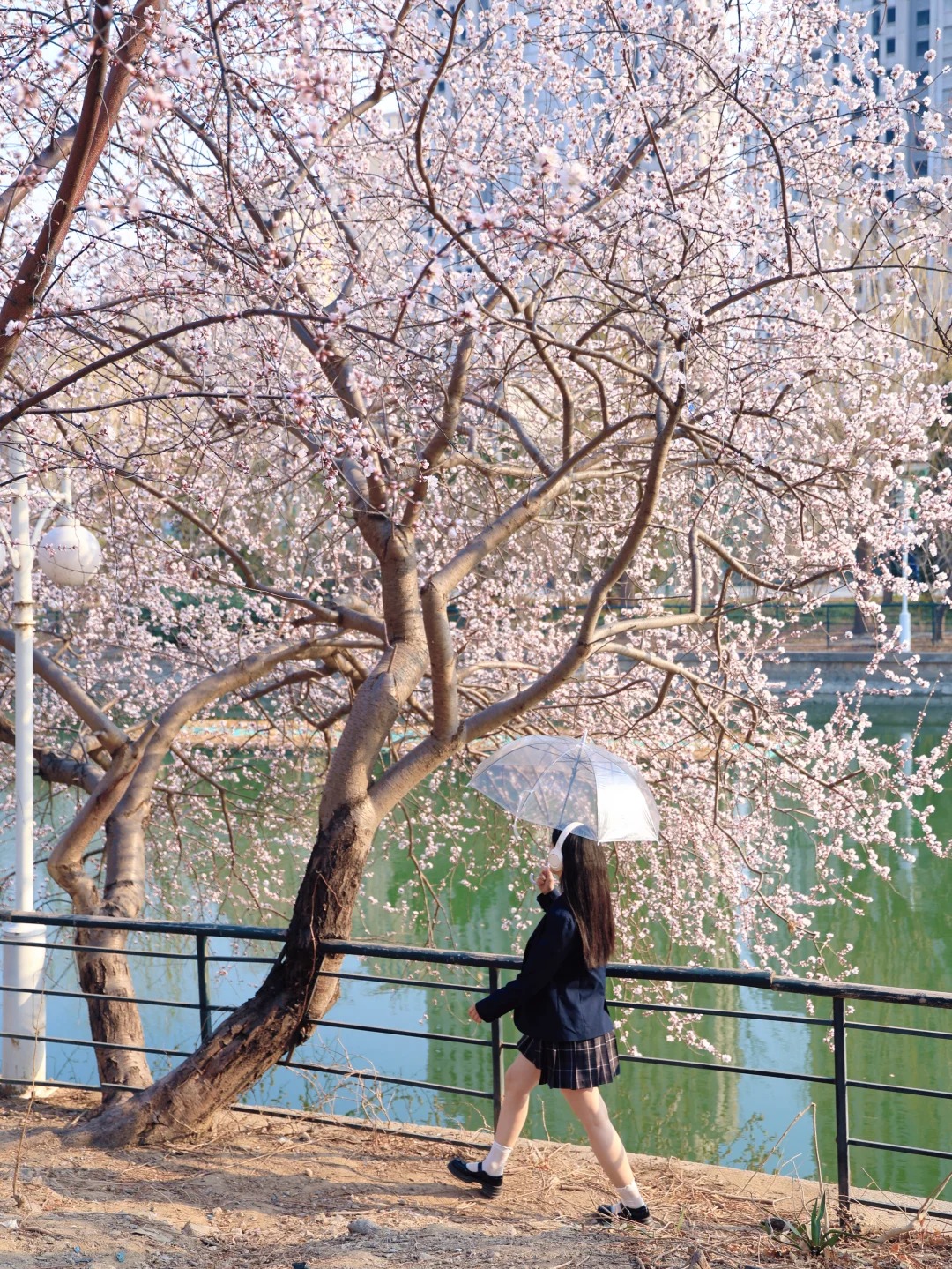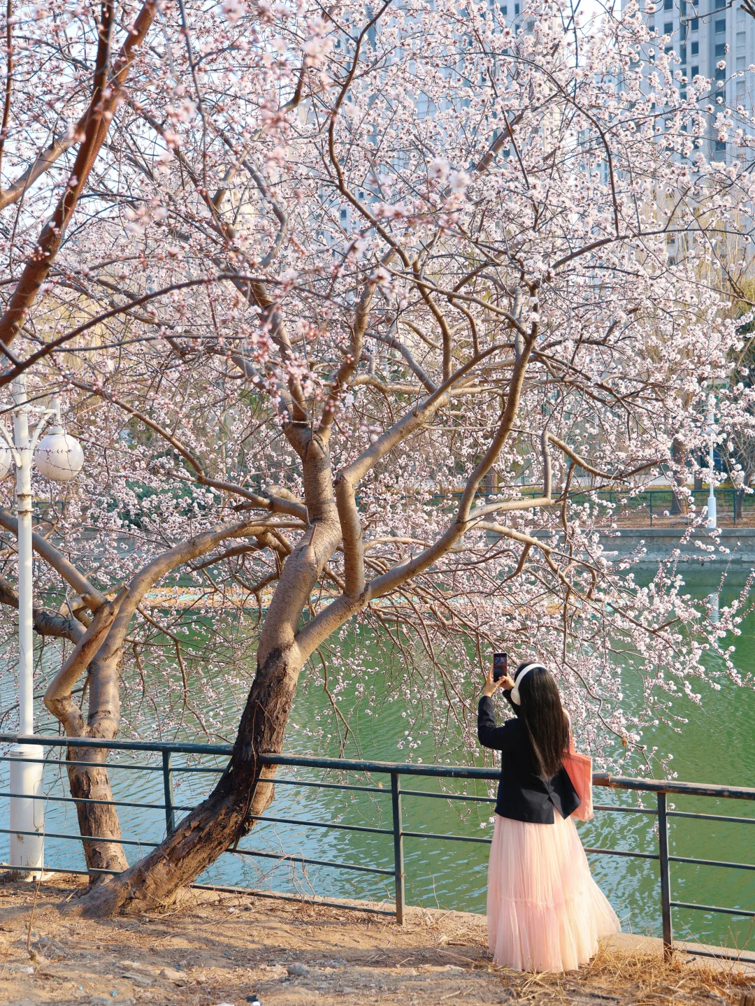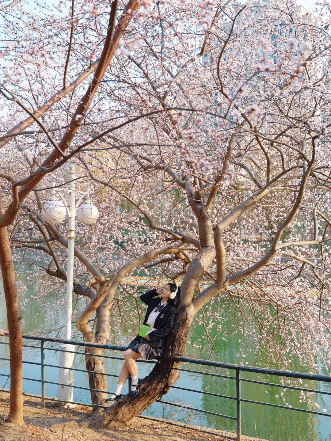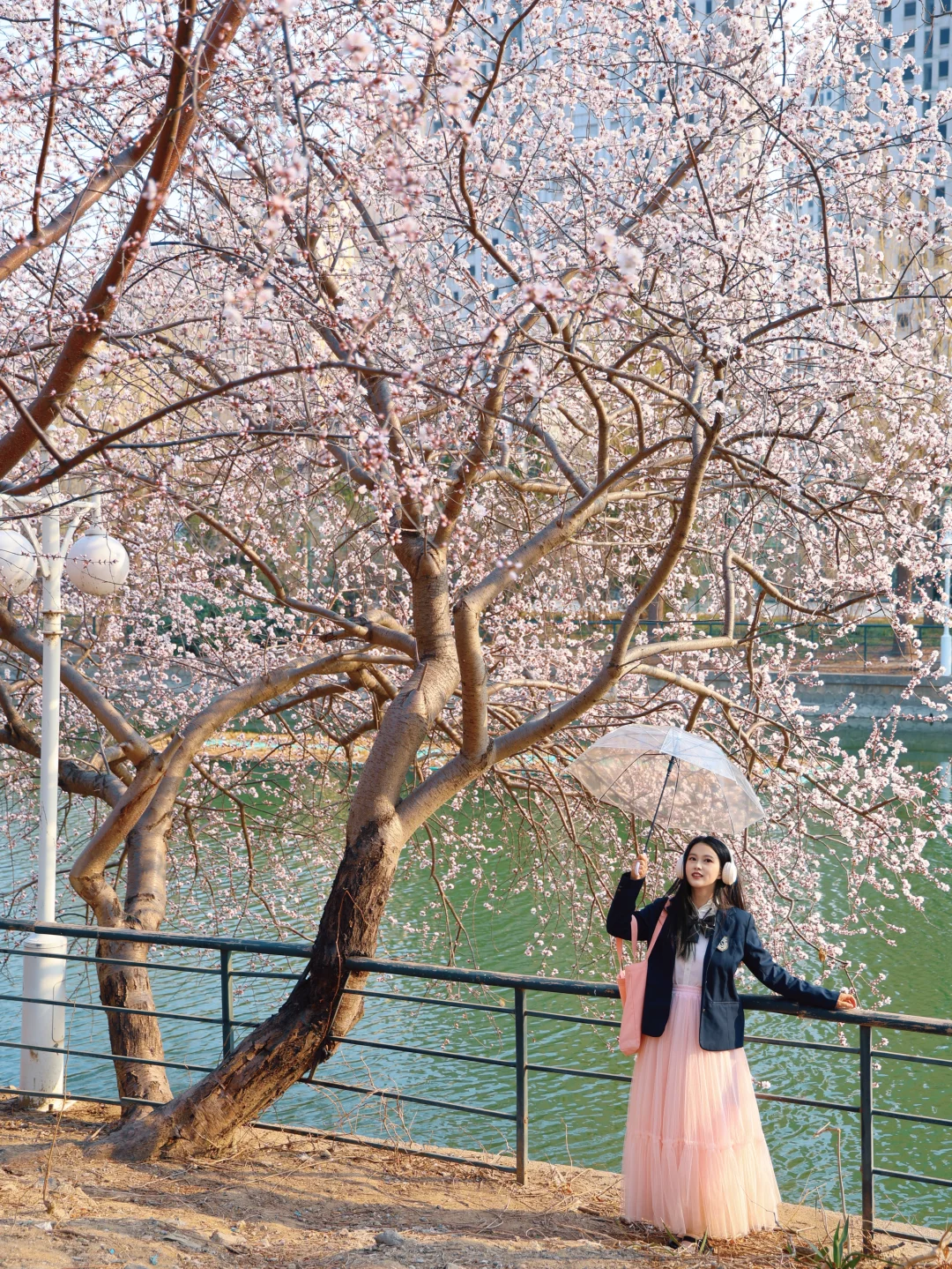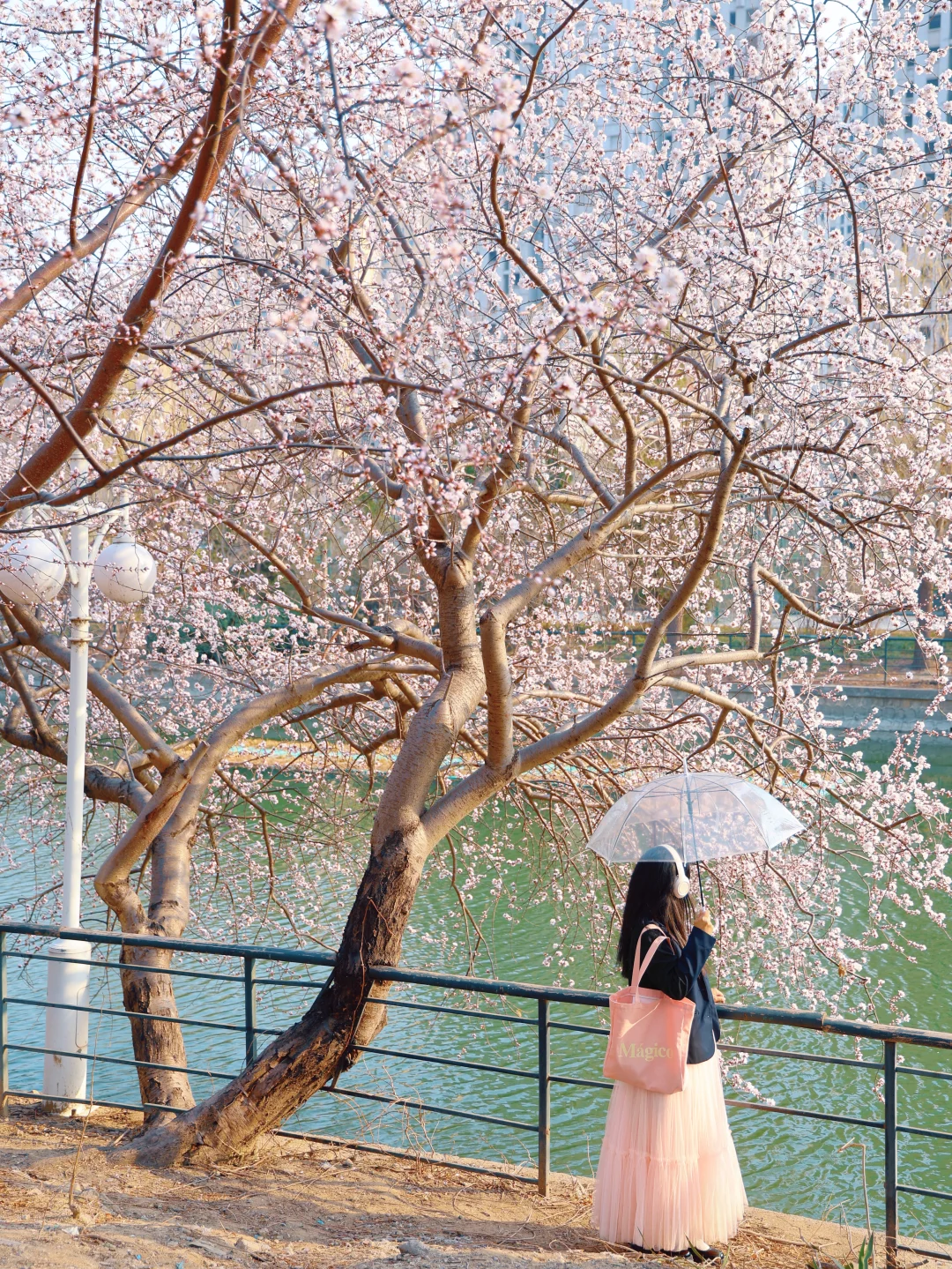 别去桃花堤人挤人了 绿道公园这颗神树就是一整个春天 水岸桃花,下午15点光影适合人像 🅿️车可以临时停在桥上