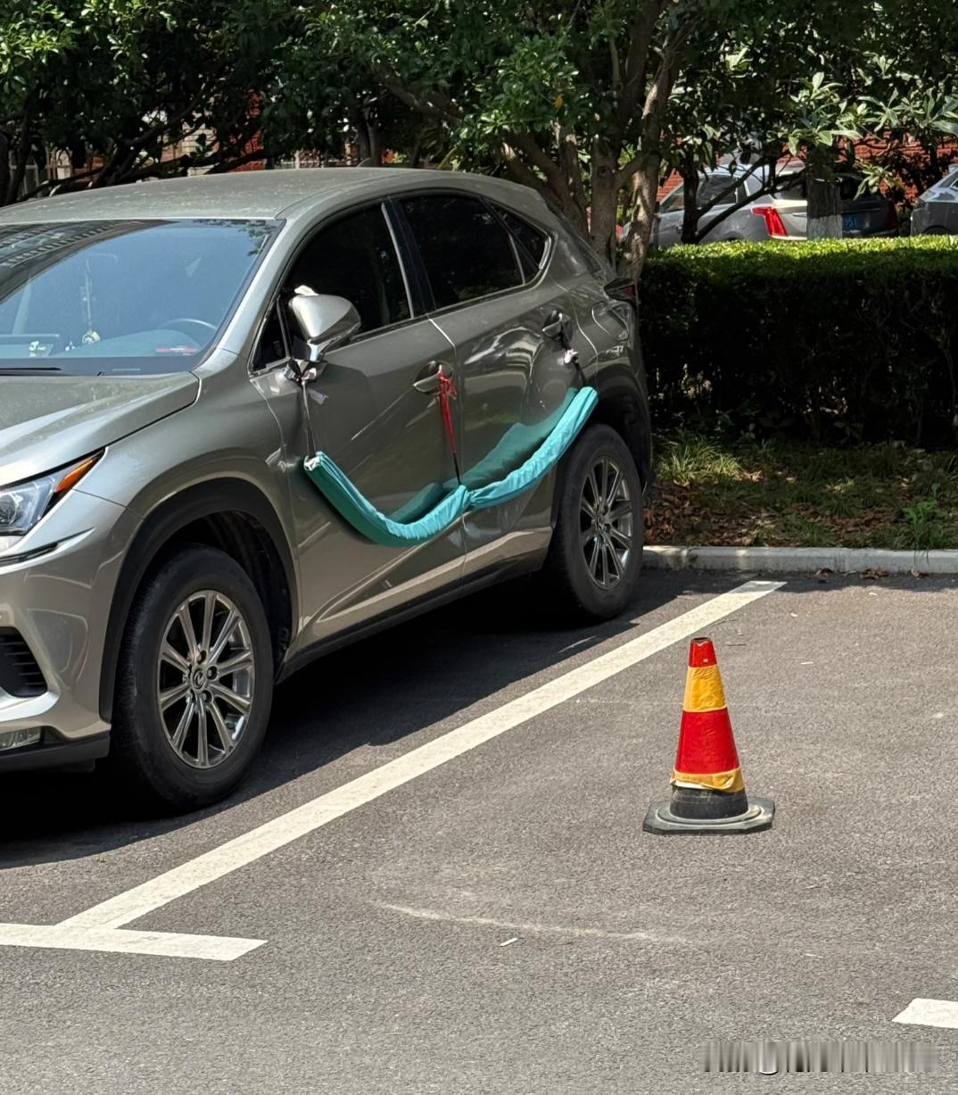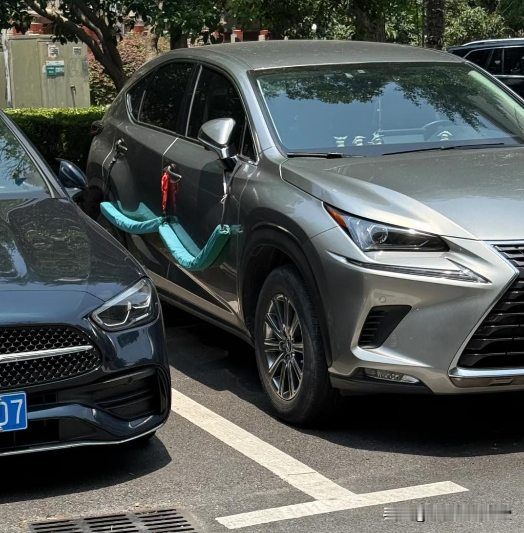 防开门杀装备 这位车主肯定被开门杀弄怕了,直接上装备了,貌似弄起来也蛮方便的,把手上一挂就完事了