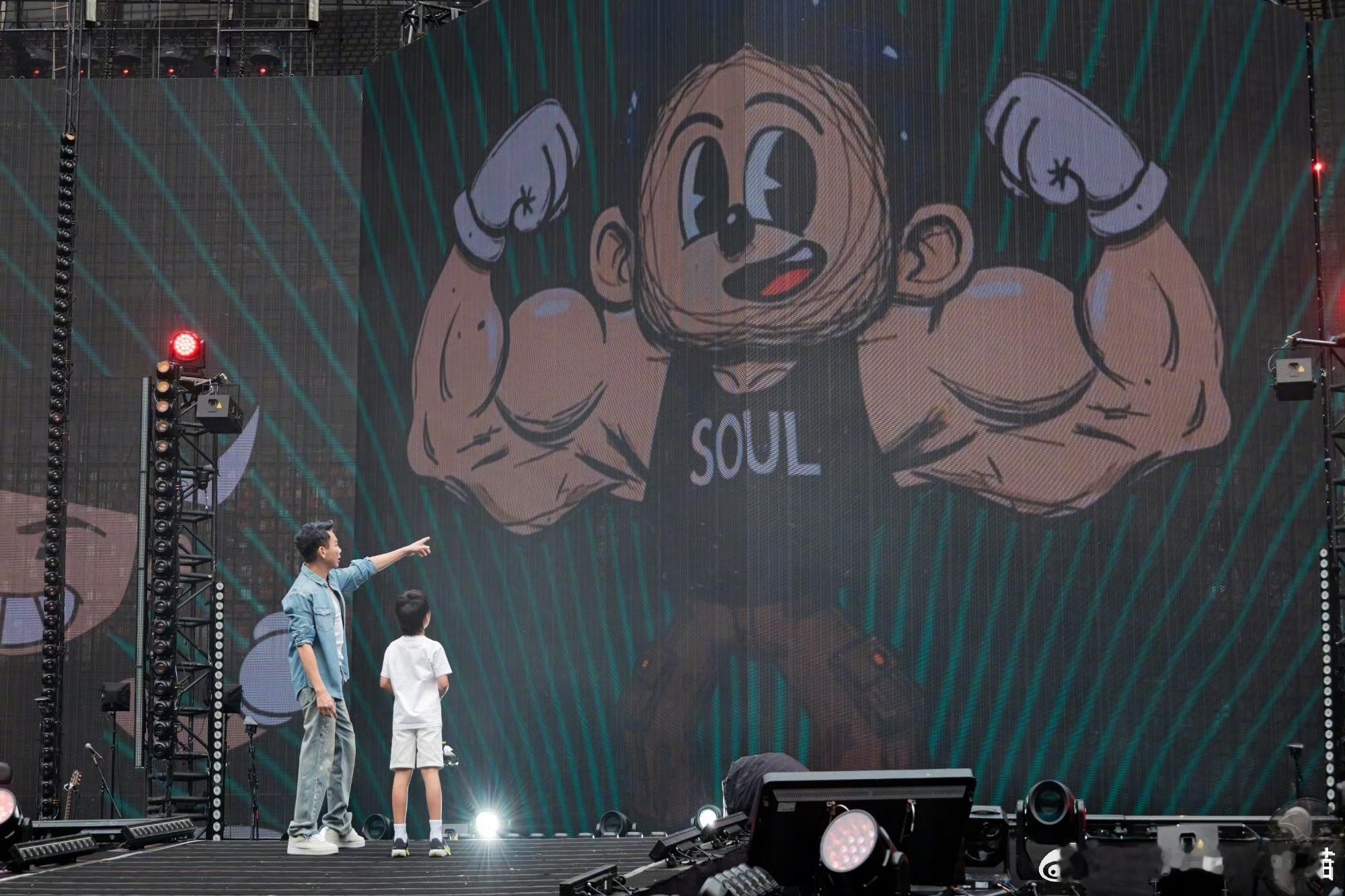陶喆儿子出镜了 谁能扛得住这种画面啊,陶喆牵着儿子走在演唱会舞台,满屏都是父爱,