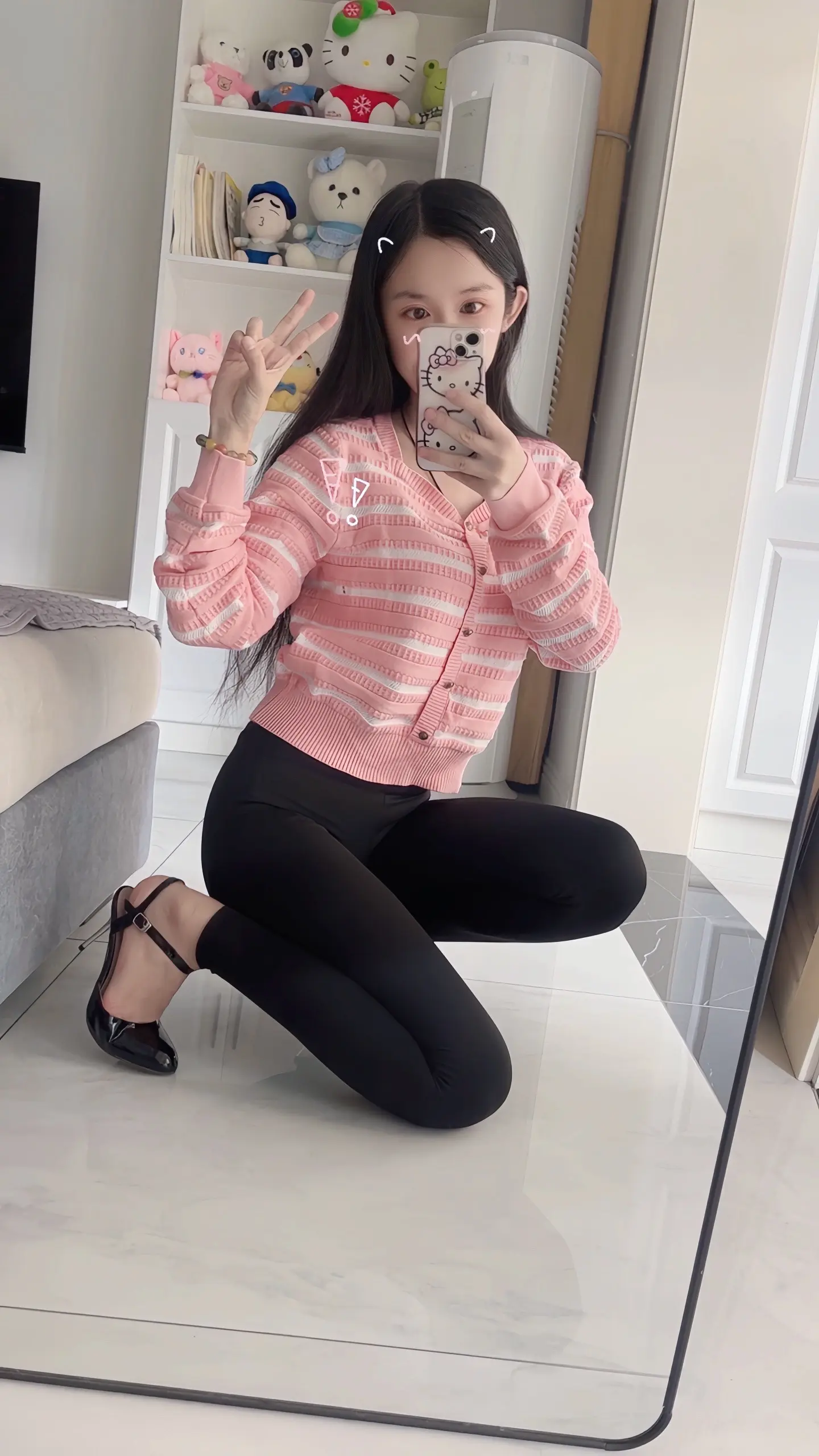 对镜拍瑜伽裤完美身材清纯简单干净